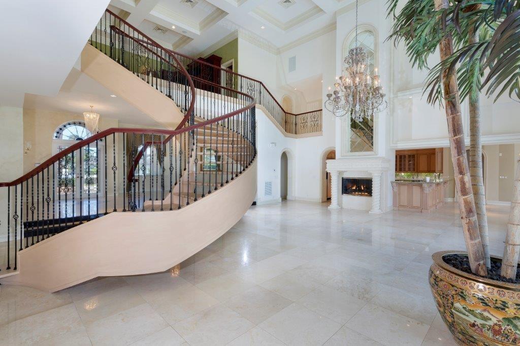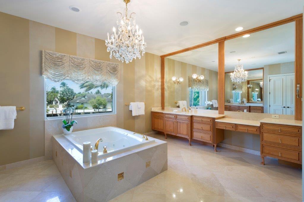 Located in the prestigious gated community of Bay Colony. This Mediterranean inspired 5 bedroom, 6.2 bath estate is 3 lots from the point & offers 100' deep water dockage. Grand Foyer enters into an impressive open living area with volume ceilings. Kitchen offers granite counters, double wall ovens, wine cooler, gas range, 2 dishwashers. Large master suite includes dual walk in closets, jetted tub, separate water closets, elevator, media/theatre room, loft/office, generator, impact windows/doors,