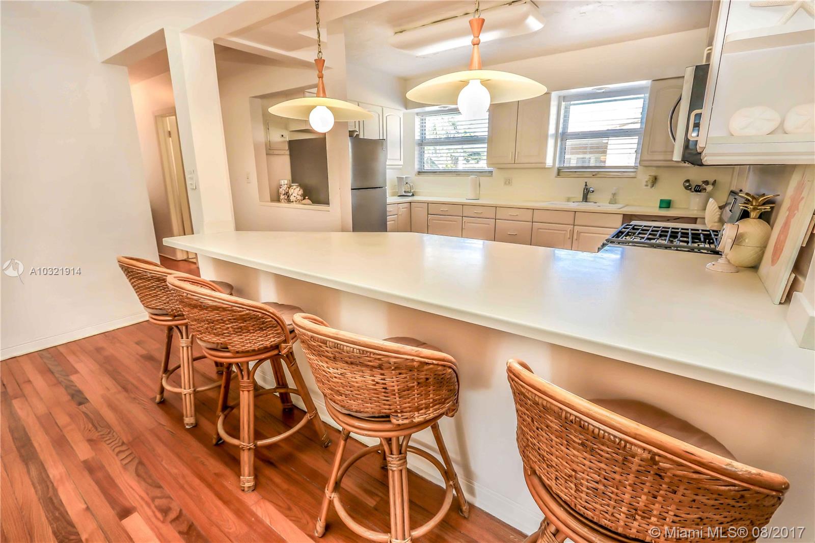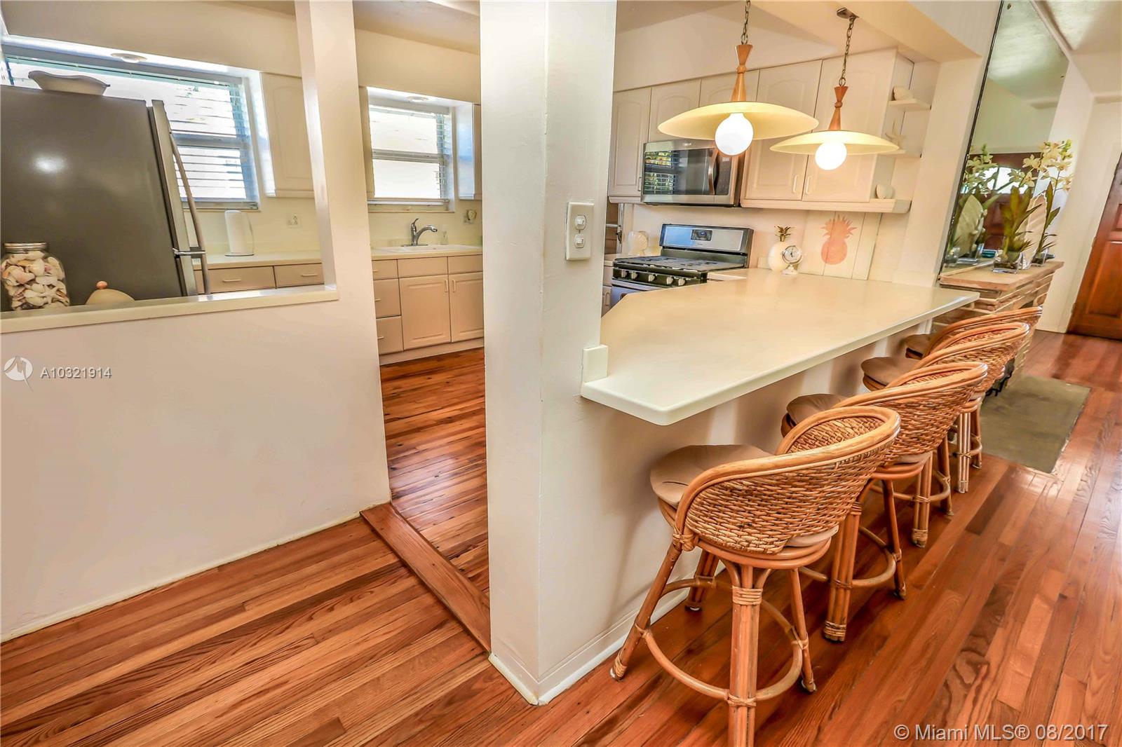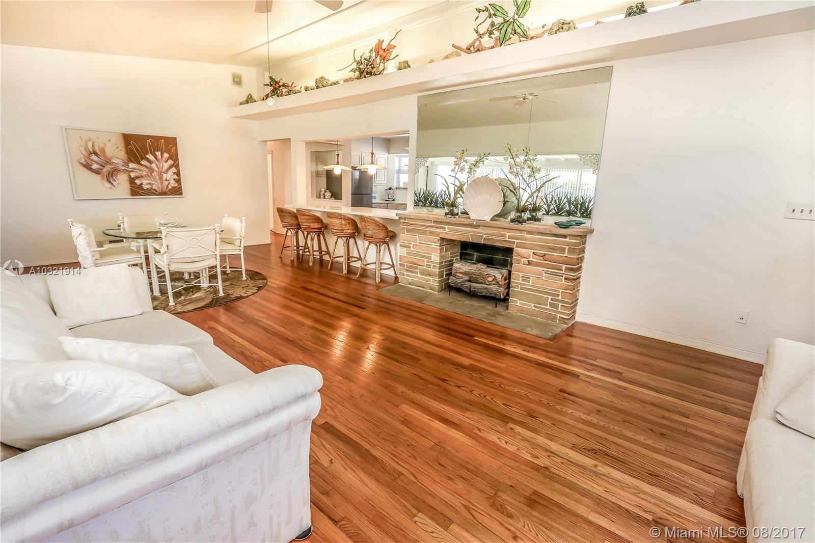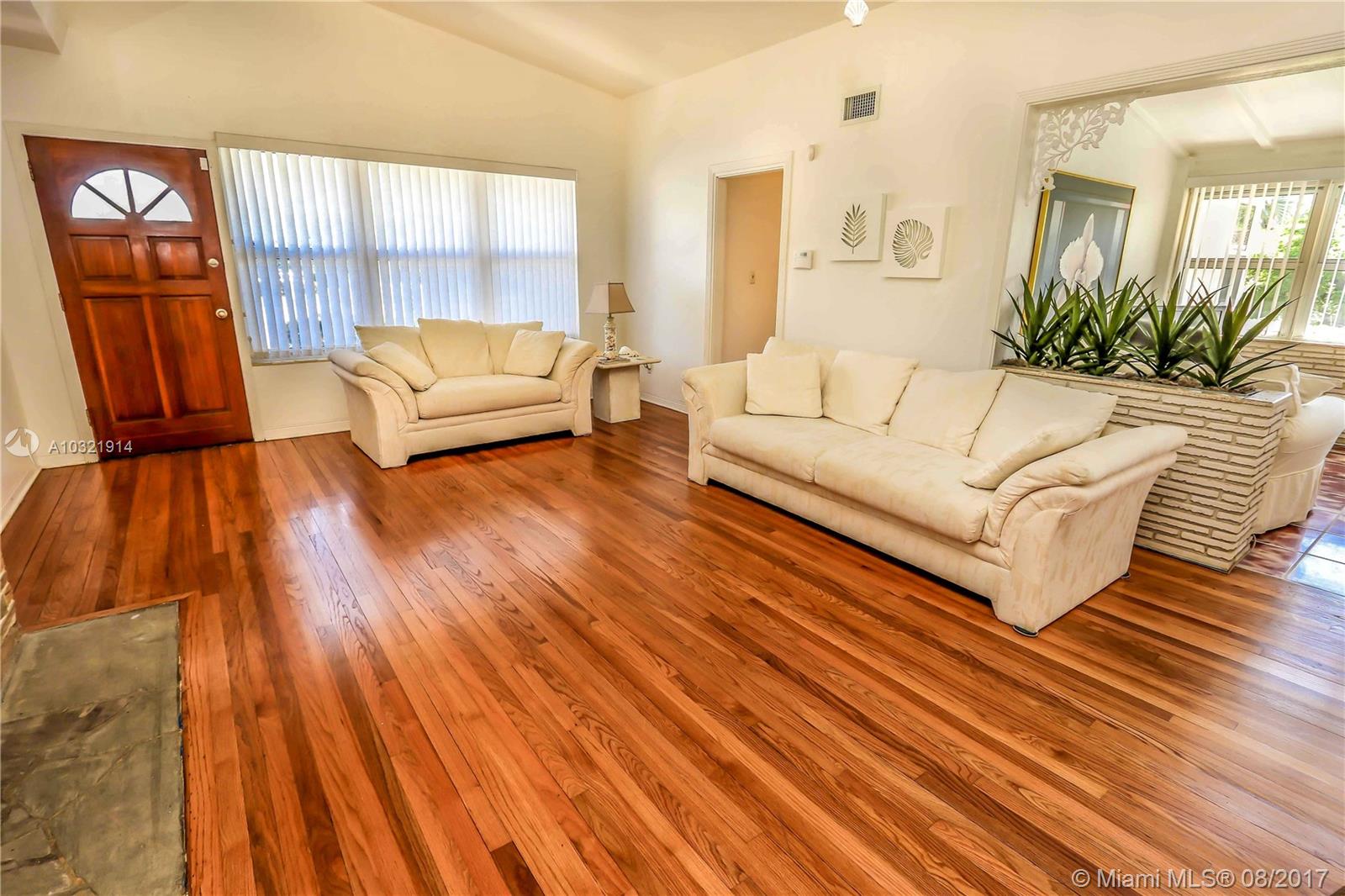 Fantastic location. 3 blocks from the beach. Mid century style corner property with covered front porch. This home features 3 bedrooms, 2 bathrooms, 1 car garage with high vaulted ceilings. Impact windows throughout. Spacious open kitchen features brand new stainless steel appliances, Corian counter tops, plenty of cabinet space, and Dania pine wood flooring. Washer/ dryer in kitchen area. Split floor plan with open kitchen/ bar is great for entertaining leading into a recessed lighting living room Spacious bedrooms. Double air conditioning and heating with a working gas fireplace. Fenced home on a 1 1/2 corner lot property allows room for pool. Manicured lawn and mature royal palms. Driveway and walkway w/ pavers. Availability to be furnished.