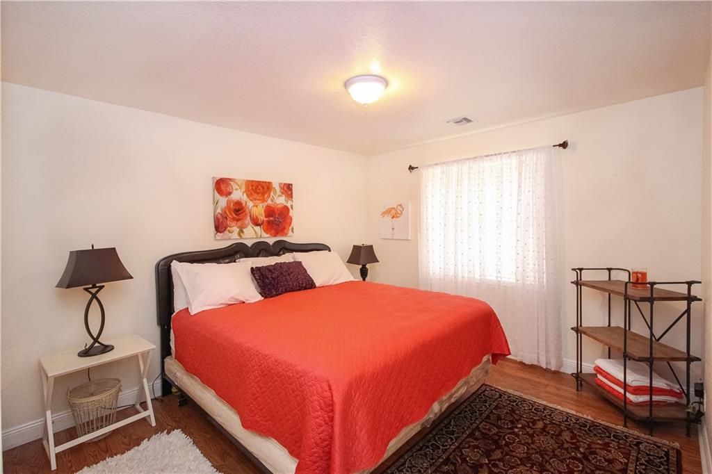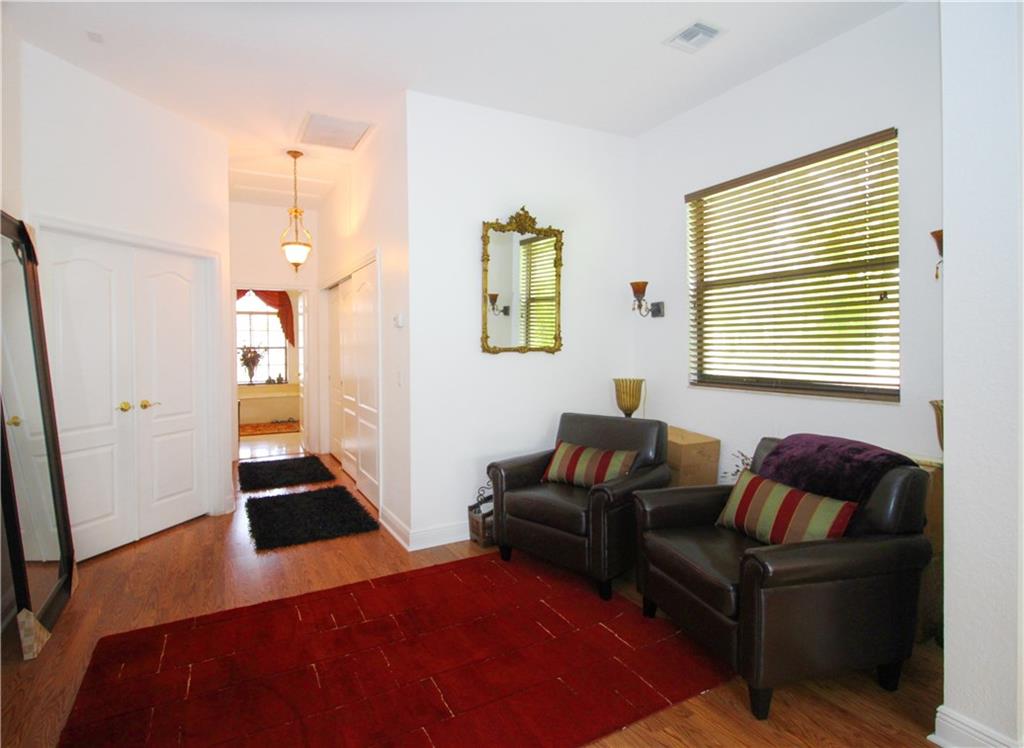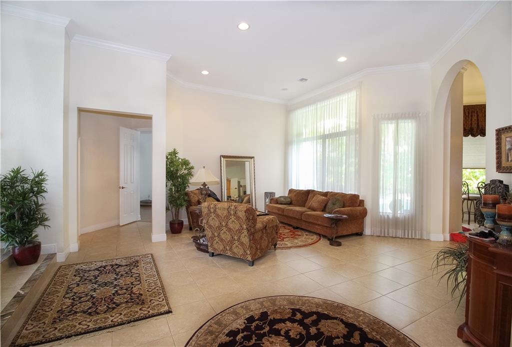 Gorgeous one story home with 5 bedrooms plus a nursery/office/work out in the master bedroom. Beautiful kitchen with rich real wood cabinetry, granite countertops, stainless steel appliances, snack bar, breakfast area and huge pantry. All bedrooms have wood laminate flooring, main areas have tile. Upgraded lighting throughout home. Custom draperies/window treatments in living areas. Backyard is completely private with lush landscaping. Home sits on a large corner lot. Covered seating around the pool.