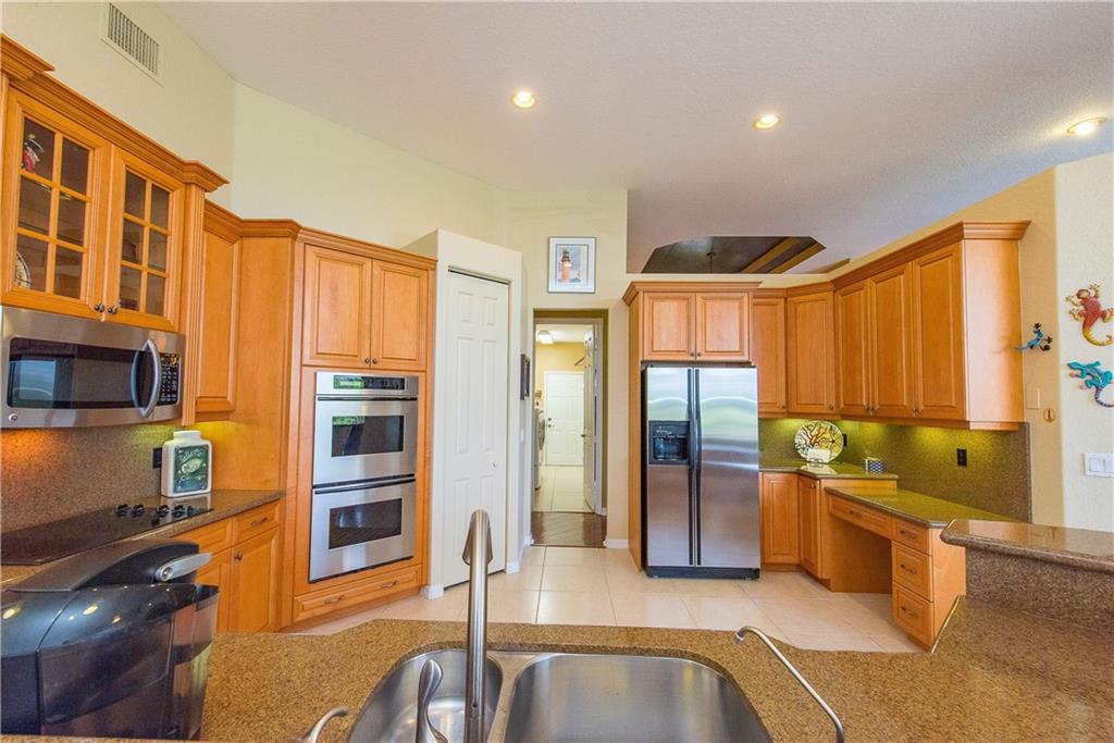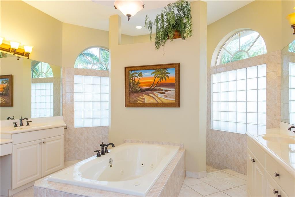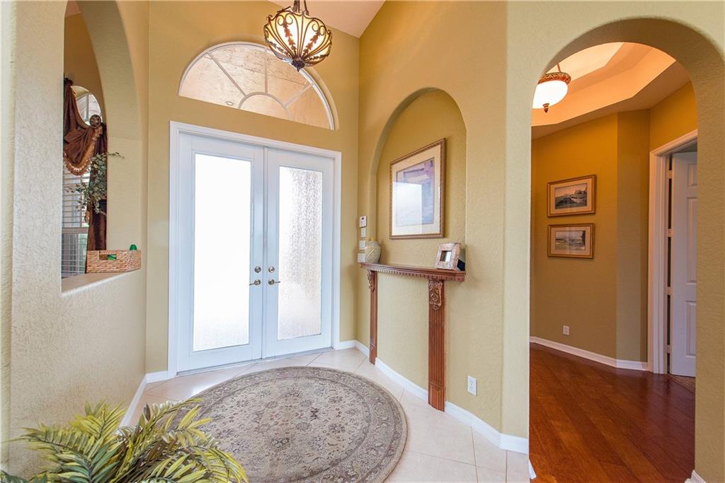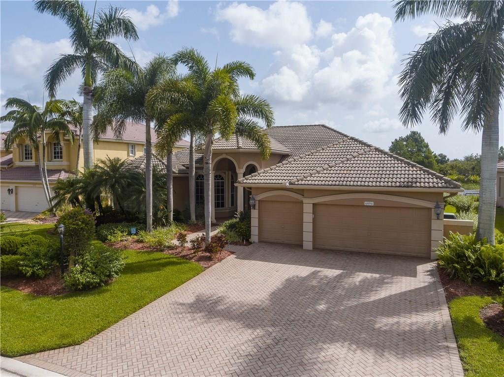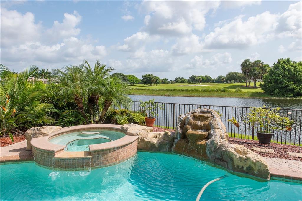 Spectacular home on Premium Water/Golf Course Lot. Wood floors in Living Room and Dining Room. Master suite with walk in closets and spacious bathroom, shower with 2 heads and Jacuzzi Tub. Upgaded Kitchen with Wood Cabinets, Granite counters, Stainless steel appliances and Double ovens. Beautiful open pool, spa and waterfall. Accordian Shutters. Guest bath recently updated. Upgraded Lighting and Fans, New Dishwasher, Upgraded Landscaping, Plantation Shutters, New Water Heater and mosquito mister.