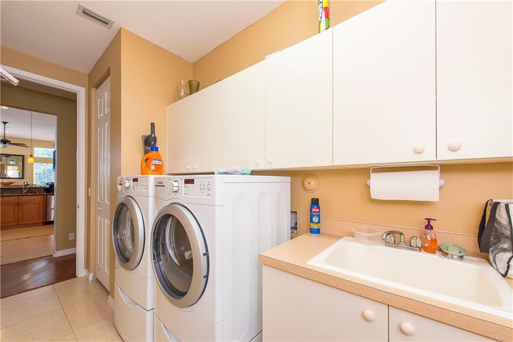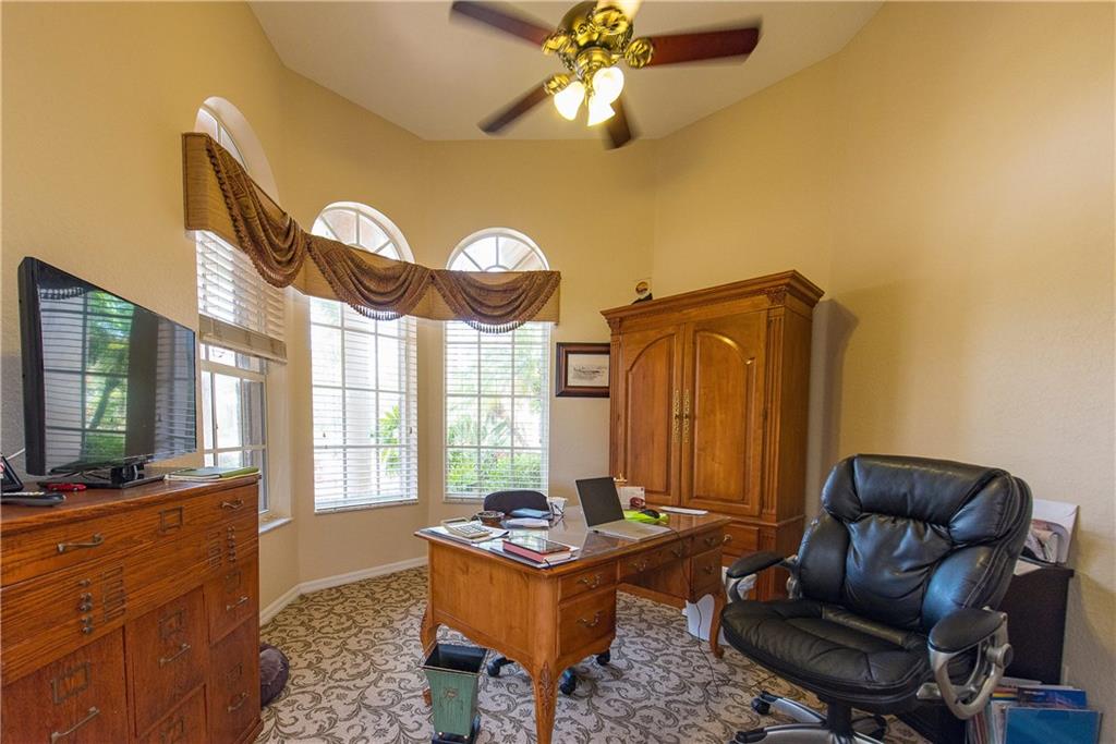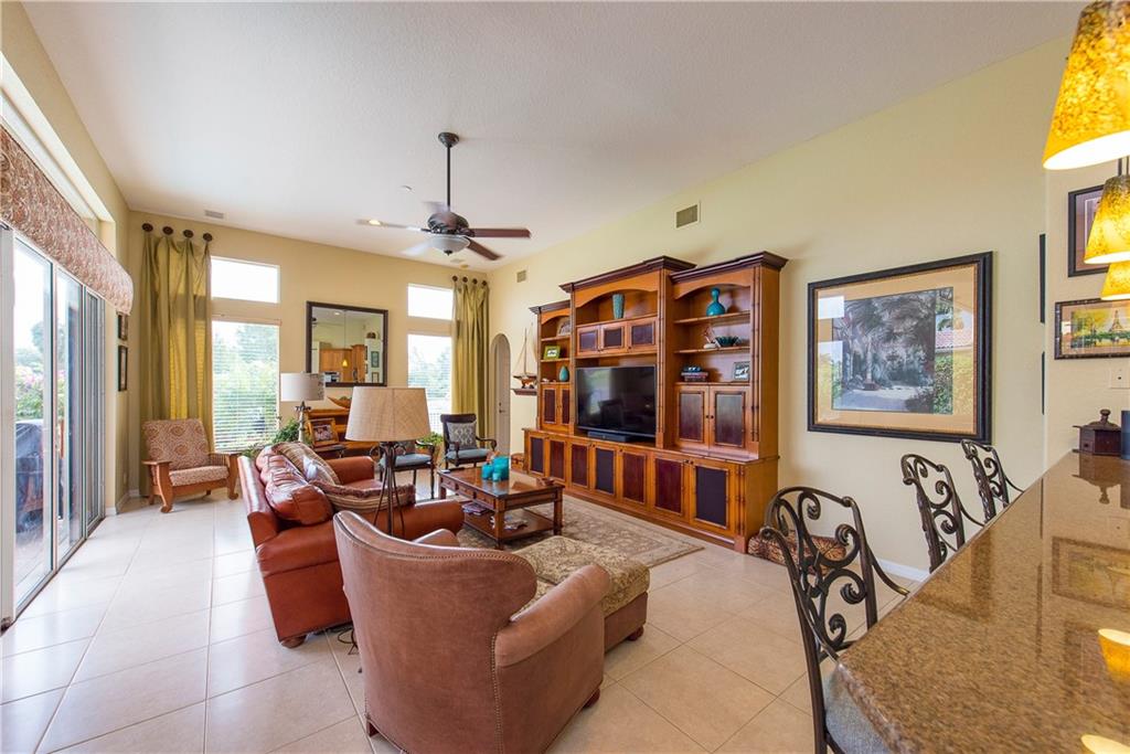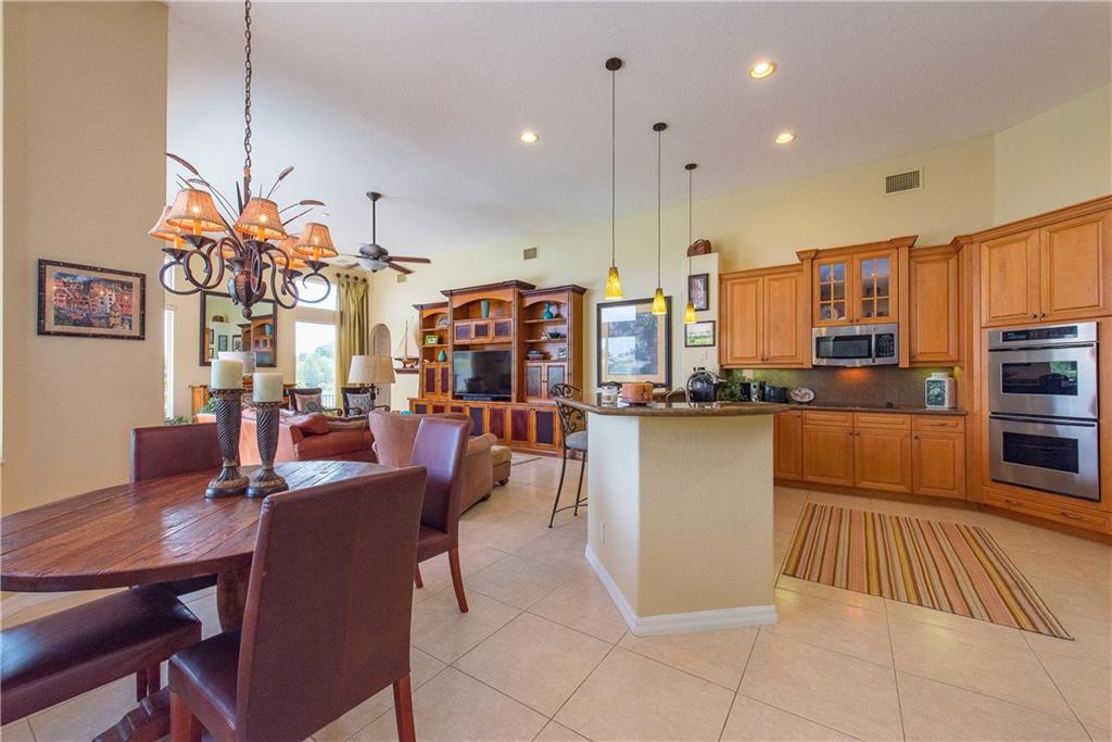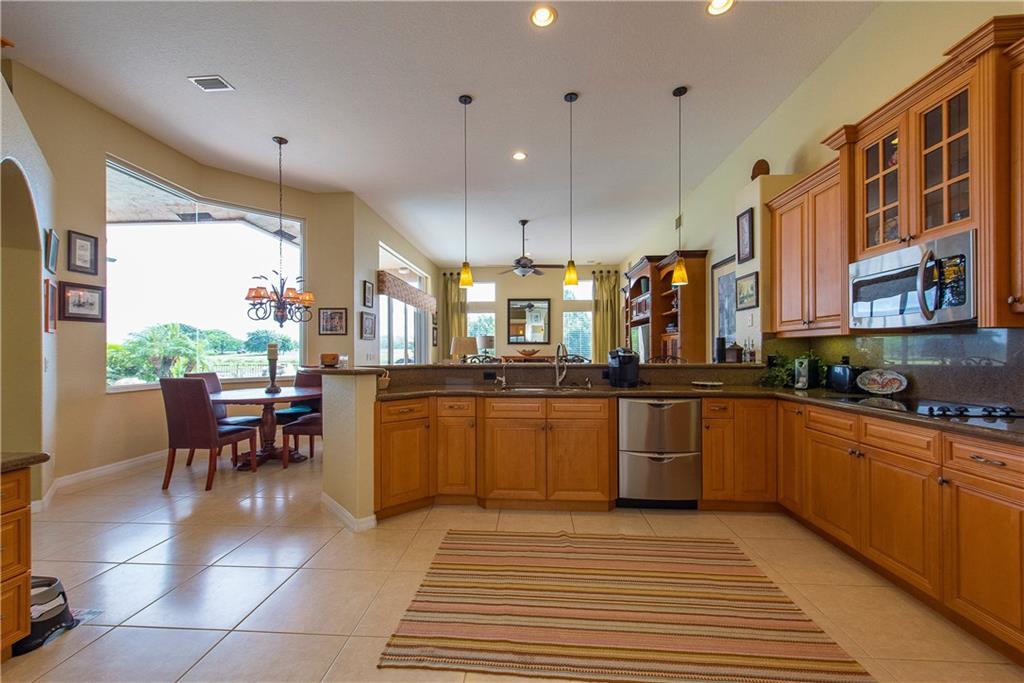 Spectacular home on Premium Water/Golf Course Lot. Wood floors in Living Room and Dining Room. Master suite with walk in closets and spacious bathroom, shower with 2 heads and Jacuzzi Tub. Upgaded Kitchen with Wood Cabinets, Granite counters, Stainless steel appliances and Double ovens. Beautiful open pool, spa and waterfall. Accordian Shutters. Guest bath recently updated. Upgraded Lighting and Fans, New Dishwasher, Upgraded Landscaping, Plantation Shutters, New Water Heater and mosquito mister.