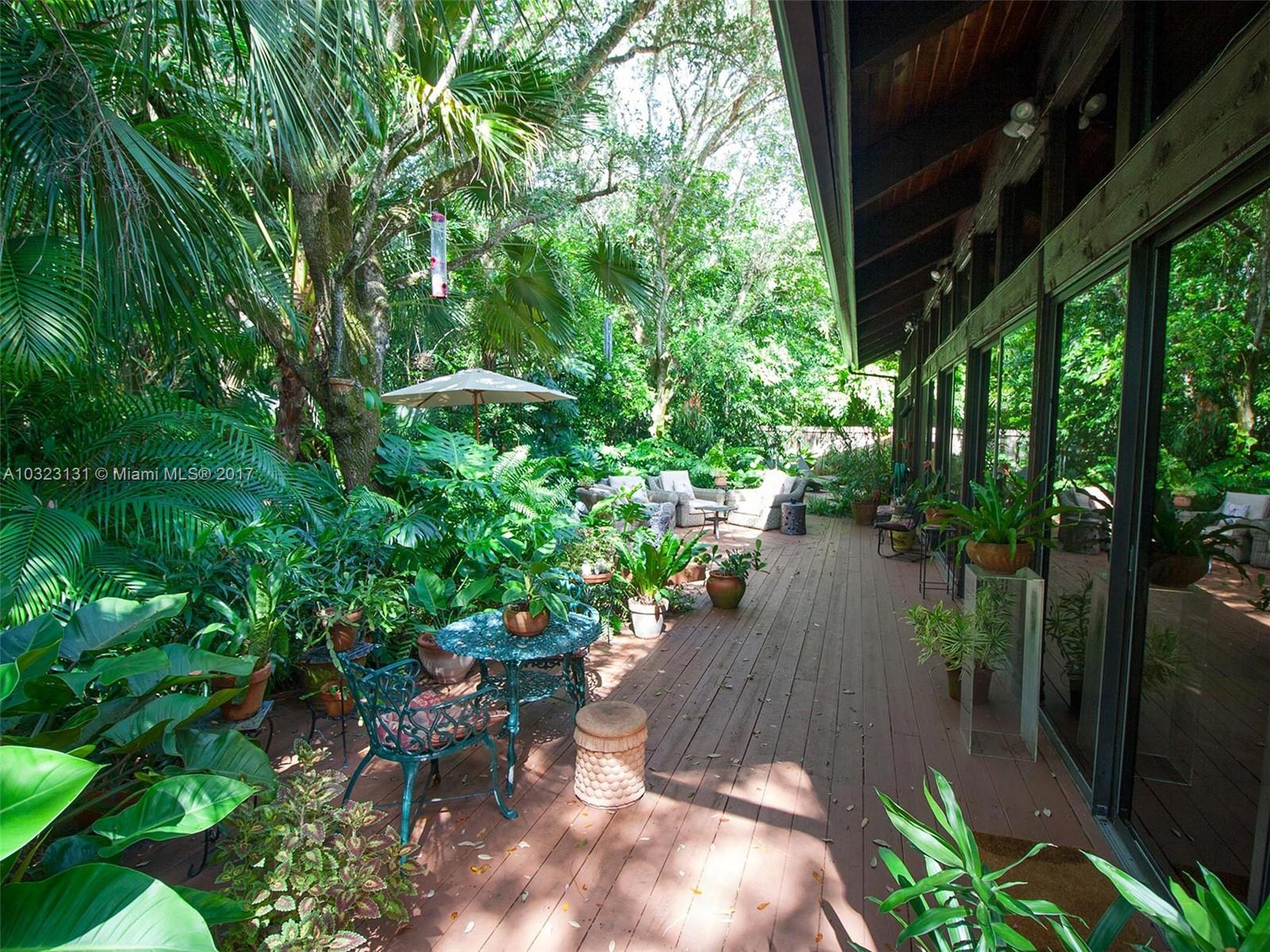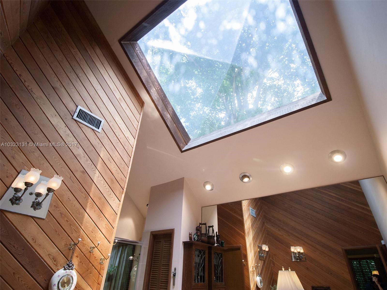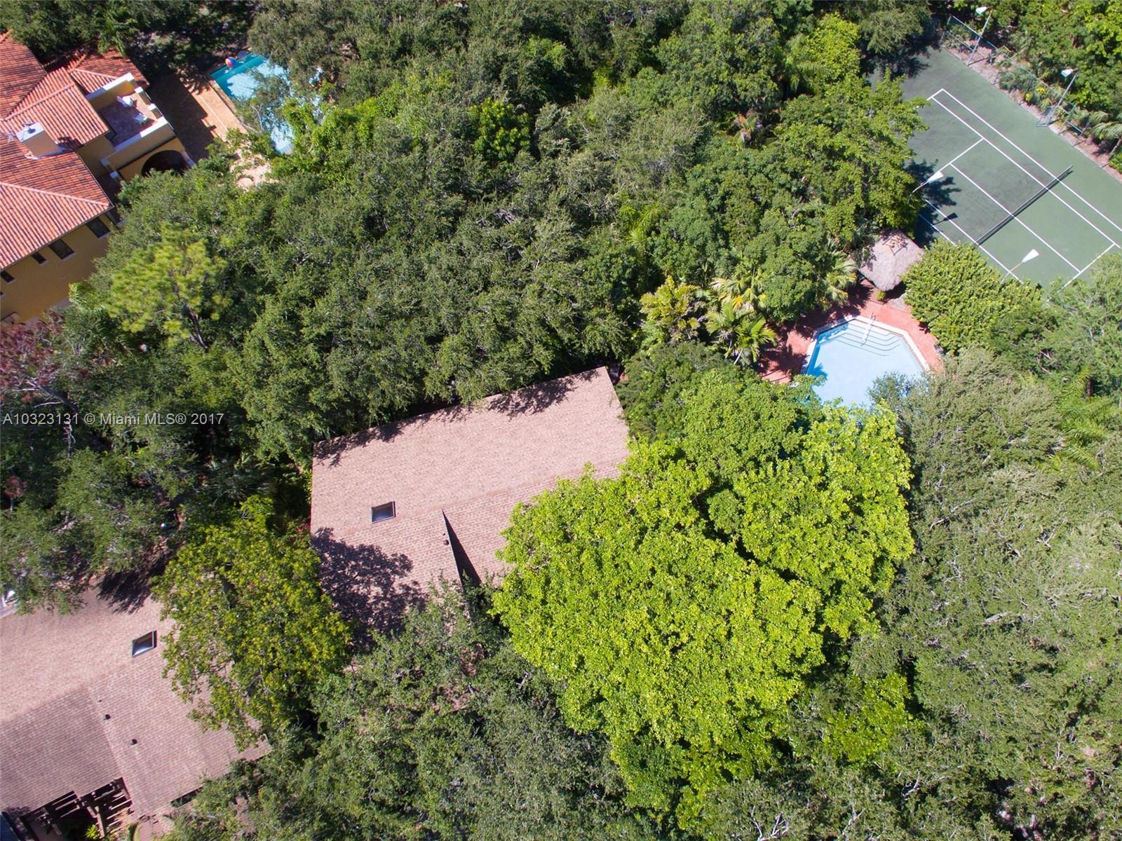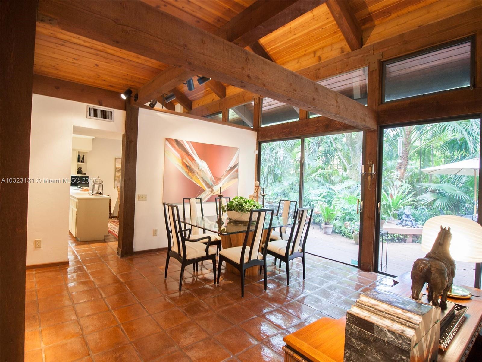 Live in a dream tree-house! There's nothing else like it! Private. Secure. Unique natural paradise in N. Pinecrest. Six homes on gated 3 acres architected by Charles Sieger share large pool and N-S lit tennis court. Original owner/community designer ready to sell! Amazing builder's model boasts 24' soaring ceilings w/tongue & groove exposed natural wood. Post & beam construction w/CBS walls. New roof. Open floor plan w/unique lofted spaces makes this home perfect for entertaining. Mexican tile mix w/wood & carpeting. Master suite located downstairs with lofted study, huge walk-in closet & cavernous master bathroom w/skylight. Other two BRs on separate loft space w/family room. Gorgeous back patio area w/lush tropical plantings on largest lot backs to quiet acre estates. Modernize to taste.