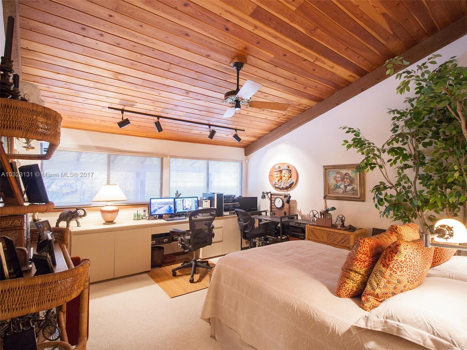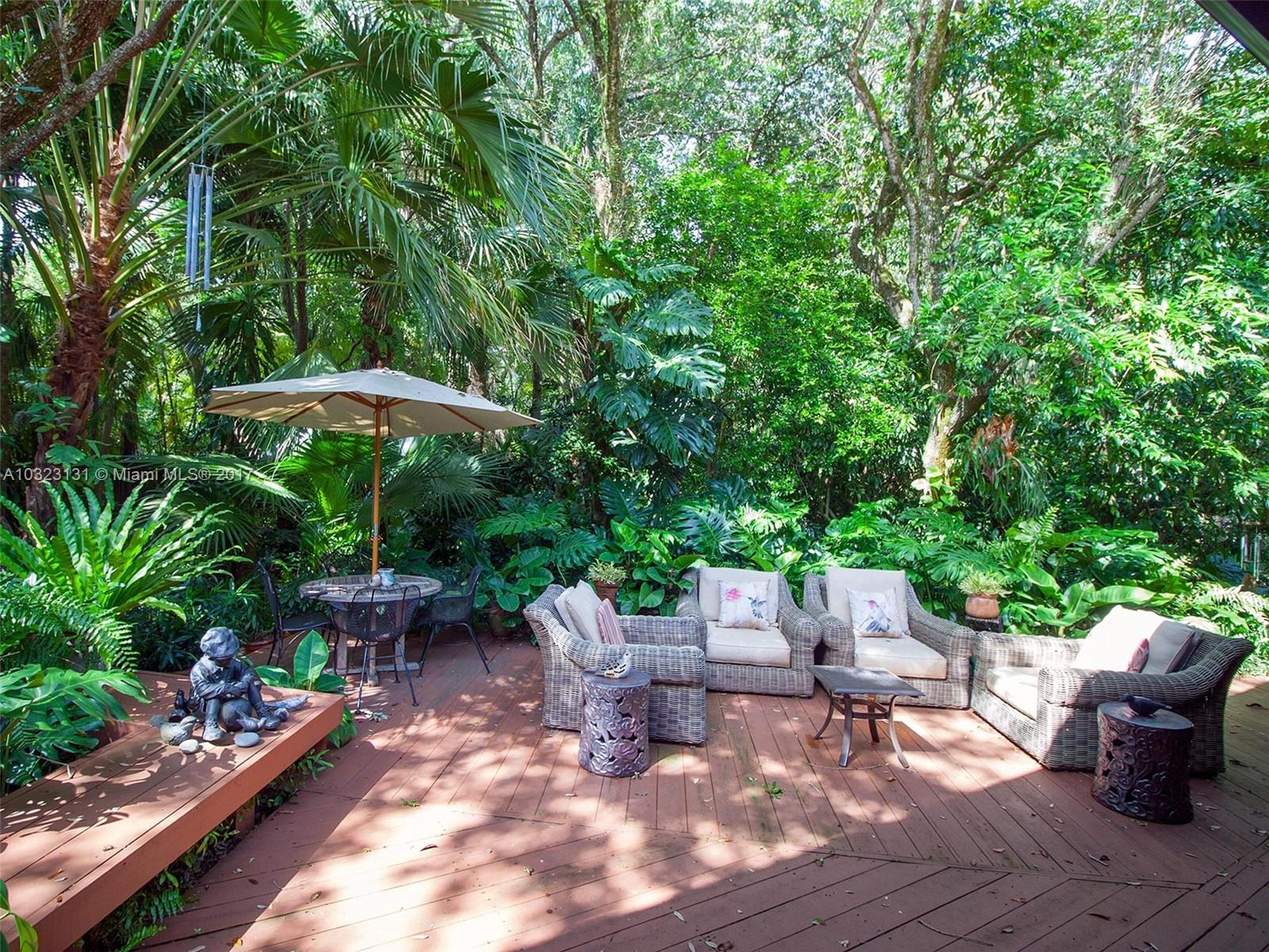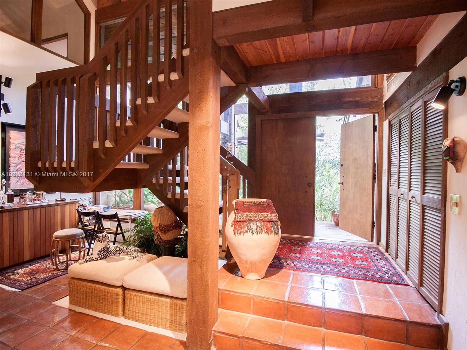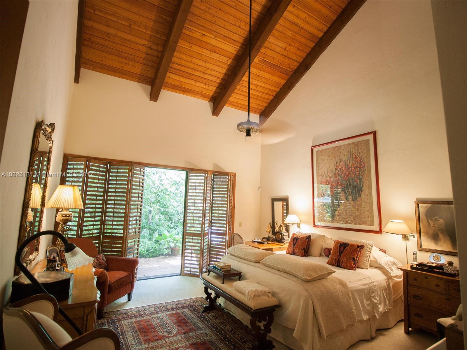 Live in a dream tree-house! There's nothing else like it! Private. Secure. Unique natural paradise in N. Pinecrest. Six homes on gated 3 acres architected by Charles Sieger share large pool and N-S lit tennis court. Original owner/community designer ready to sell! Amazing builder's model boasts 24' soaring ceilings w/tongue & groove exposed natural wood. Post & beam construction w/CBS walls. New roof. Open floor plan w/unique lofted spaces makes this home perfect for entertaining. Mexican tile mix w/wood & carpeting. Master suite located downstairs with lofted study, huge walk-in closet & cavernous master bathroom w/skylight. Other two BRs on separate loft space w/family room. Gorgeous back patio area w/lush tropical plantings on largest lot backs to quiet acre estates. Modernize to taste.