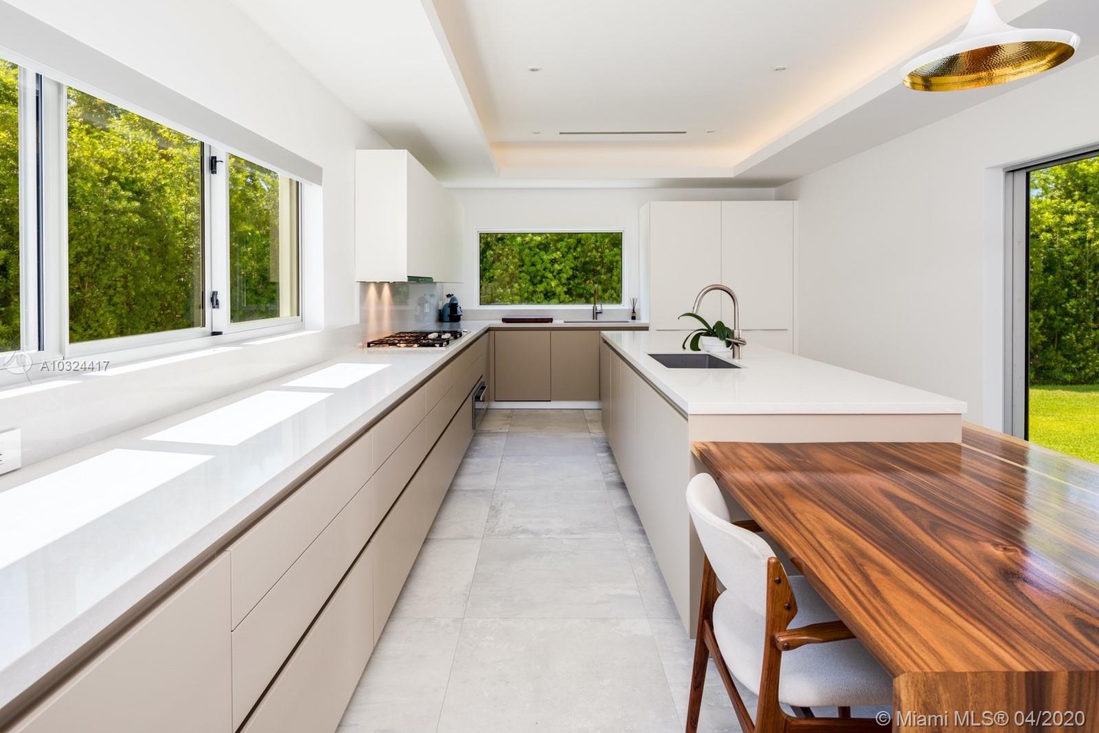 This 3 BED+OFFICE+DEN easily converted to 4TH BED+ 3.5 BA residence was fully renovated to the studs and COMPLETED in 2017. Located on prestigious La Gorce Island,this single story contemporary oasis on a manicured 13,750 SF corner lot,offers utmost privacy. Each impeccably designed bathroom feat.floor to ceiling marble slab walls,mosaic flooring,custom mirrors & vanities. Open layout,chef’s kitchen,Miele Appliances,Sub-Zero wine cooler,custom Albizia wood table,climate control panels,Lutron smart lighting & 2 car garage