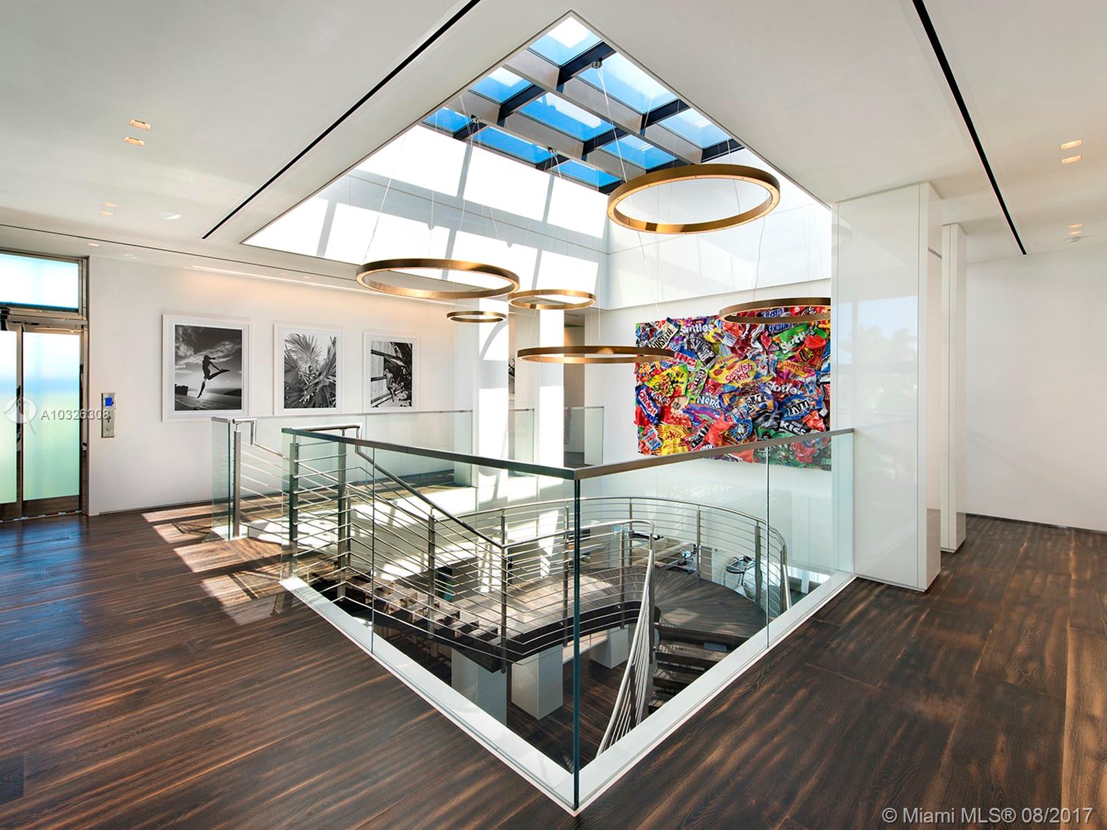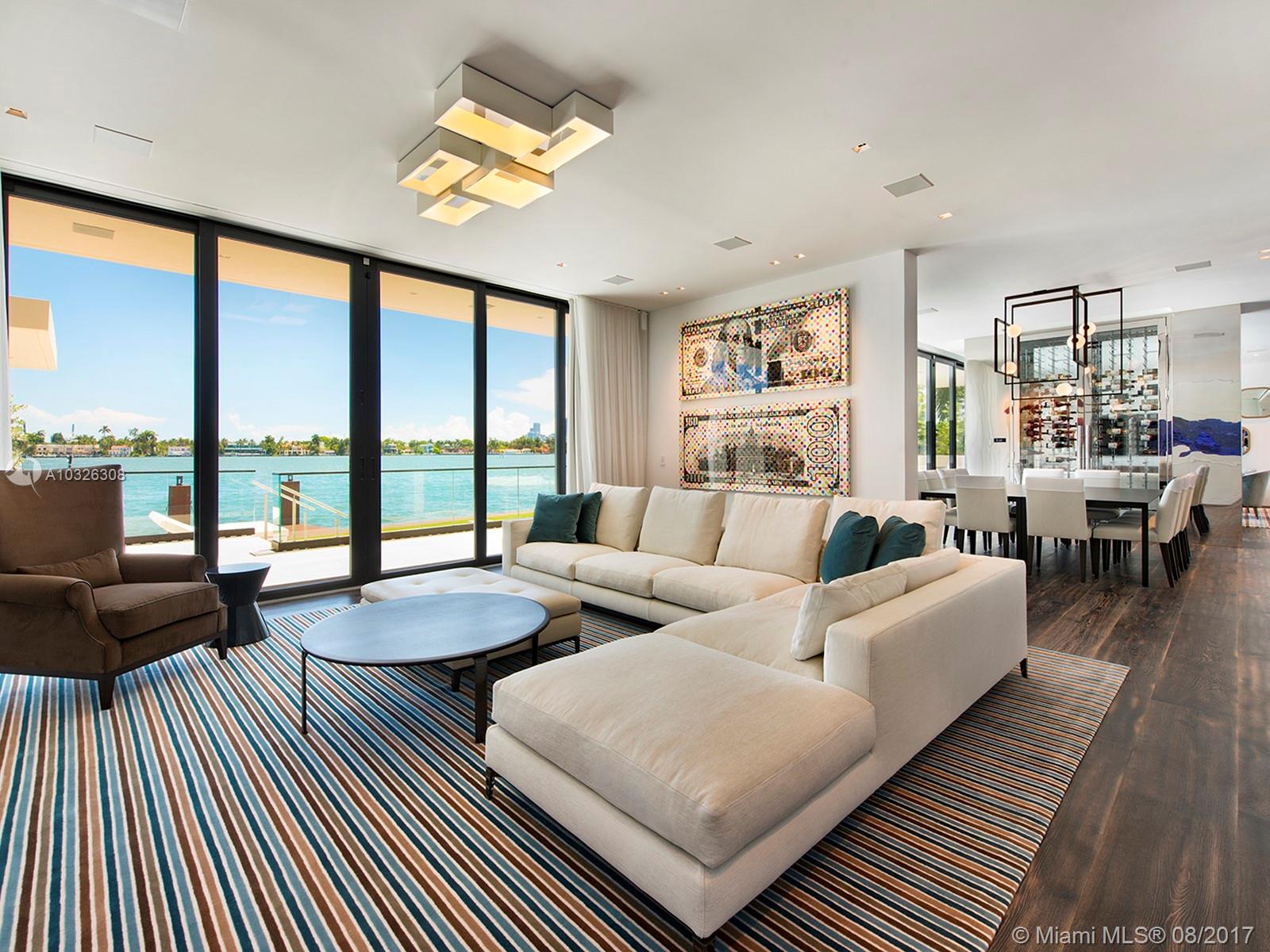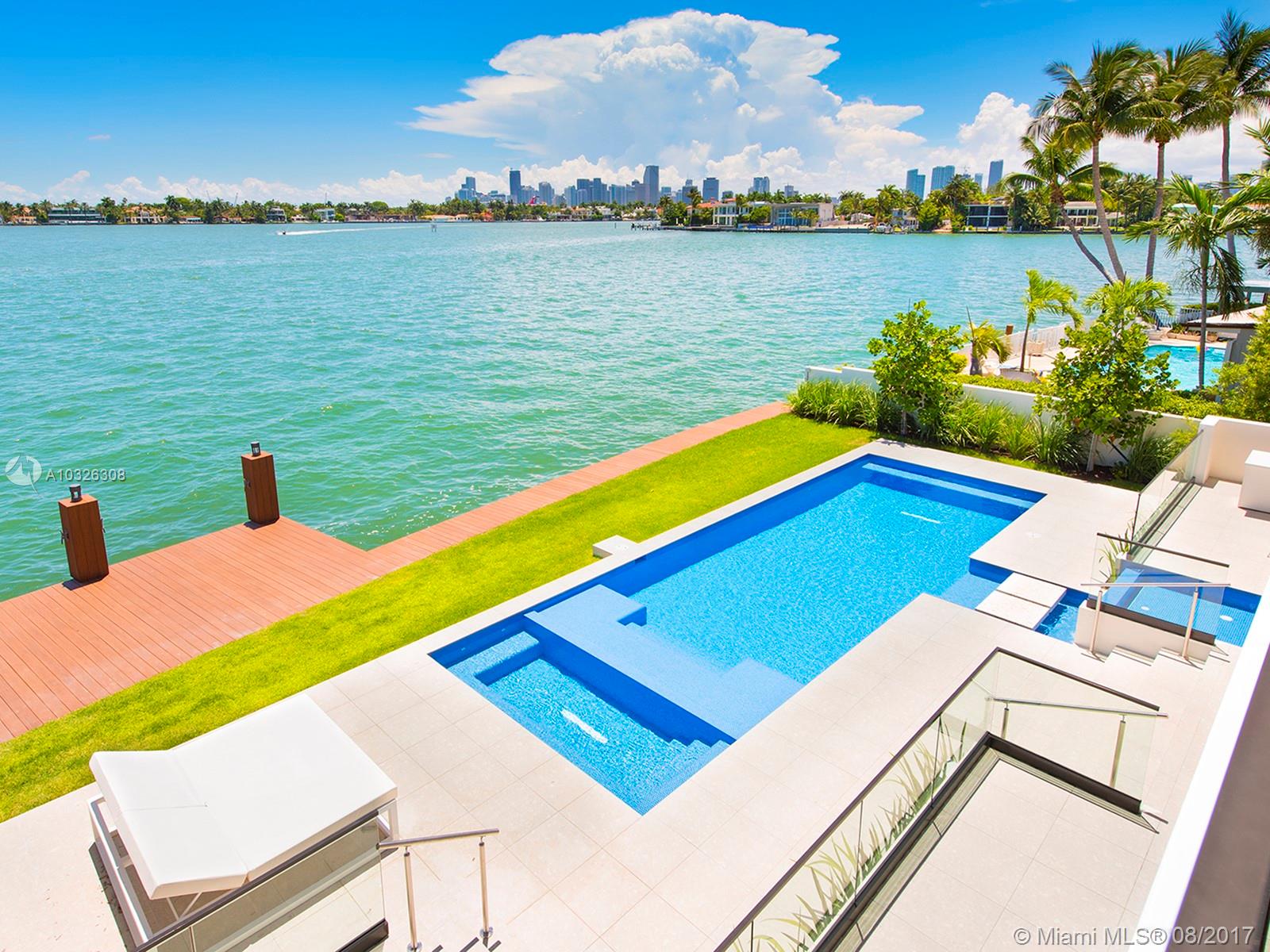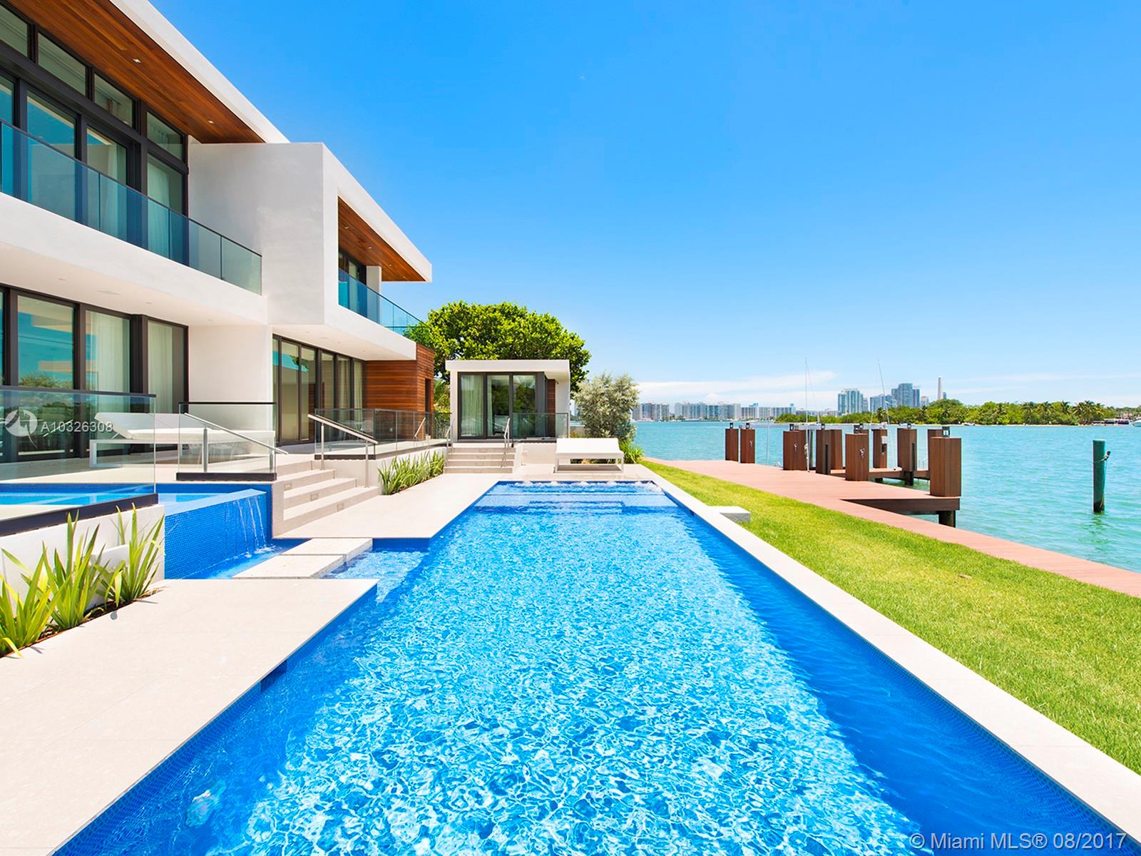 New modern waterfront home on Venetian Islands in Miami Beach, boasts 5 beds, 7.5 baths plus office and spa. Lavish 7,026 sf with the finest finishes. Stunning custom Boffi kitchen touts double Subzero and Miele appliances. Ornare closets, elliptical staircase illuminated by a 300 sf skylight, cerused oak floors throughout, glass elevator, Savant Smart Home with 4 car garage with electric lifts. Venture outdoors and uncover a resort-style backyard with 107 ft of water frontage, no luxury spared.