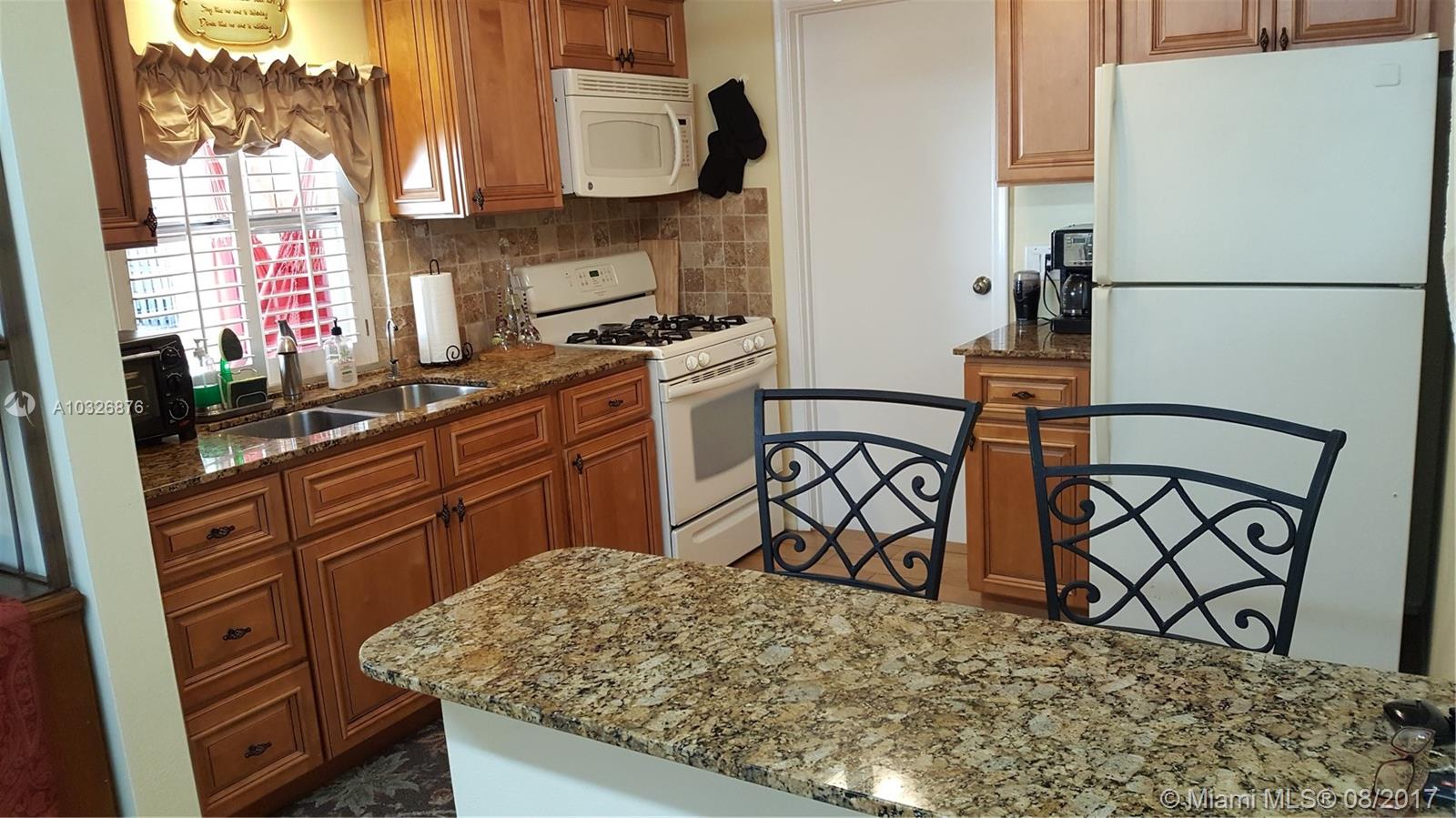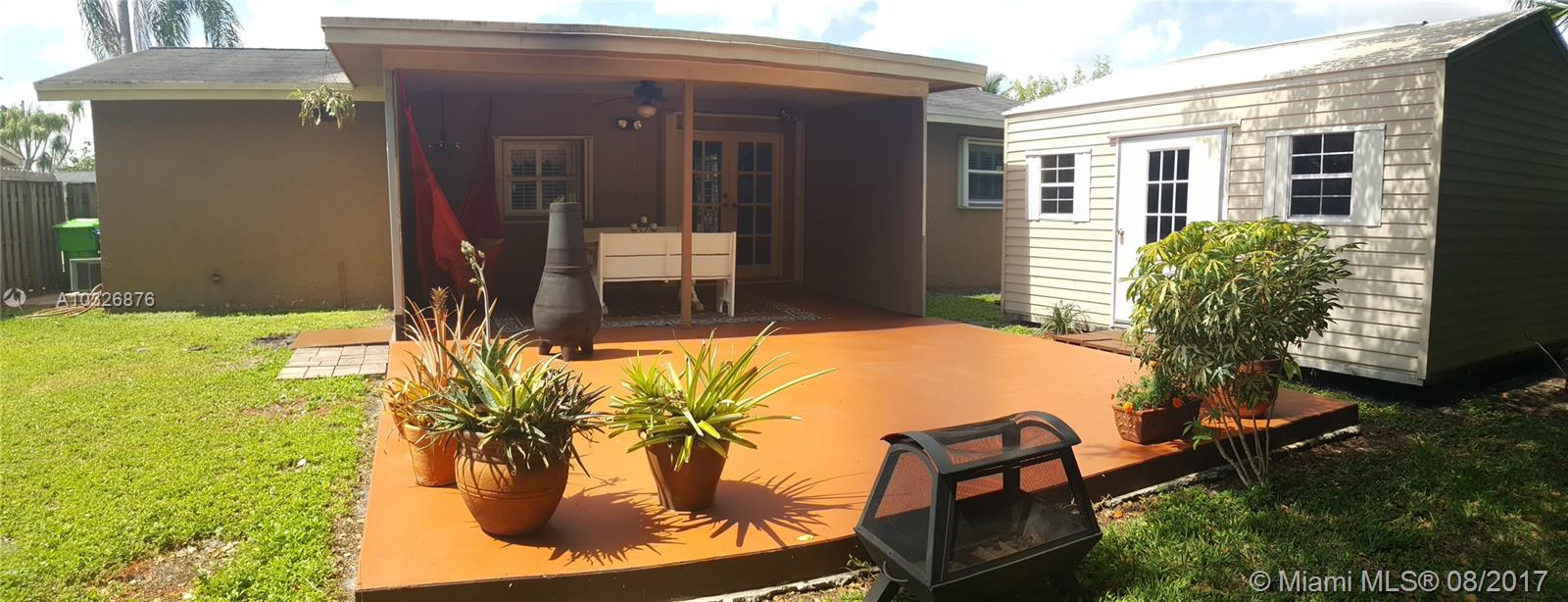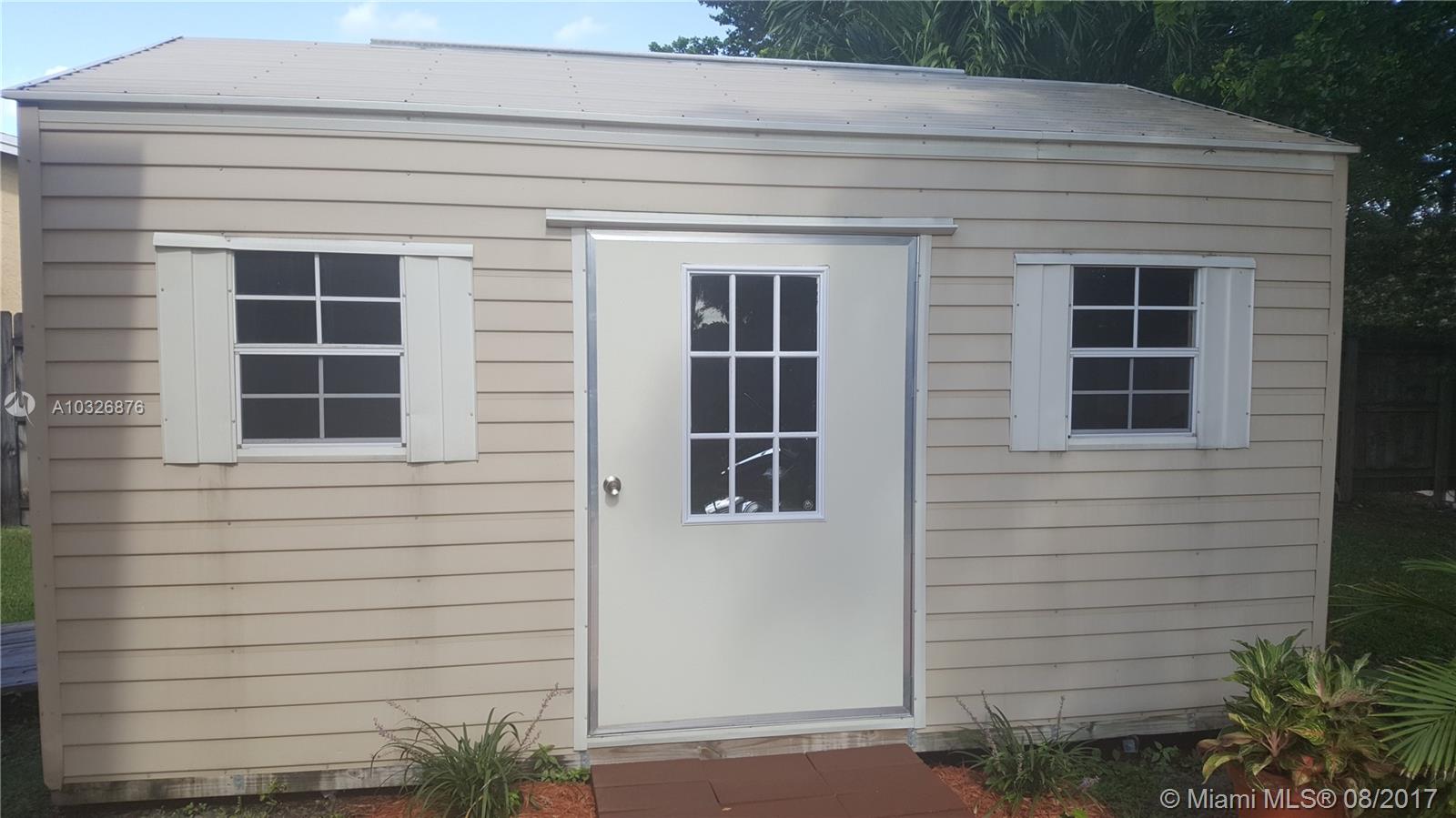 Safe and secure, very well maintained, 960 sq ft, 2 bedroom 1 bath house. Located on a quiet double cul-de-sac, family friendly neighborhood. Large permitted concrete deck behind home ready for huge expansion of living space. Hurricane ready in minutes with retractable shutters. Home passes wind mitigations qualifications. Extra storage with new 16 x 12 shed with roll-up garage door, impact windows certified to 190mph. Facilities for RV with water sewer and 30A electrical hookups. Modernized kitchen with new cabinets, granite countertops. Always ready for power outage with natural gas range and water heater. Beautiful wood-like ceramic tile floors throughout the house. Pet ready fenced back yard. A rare find in beautiful central broward county.