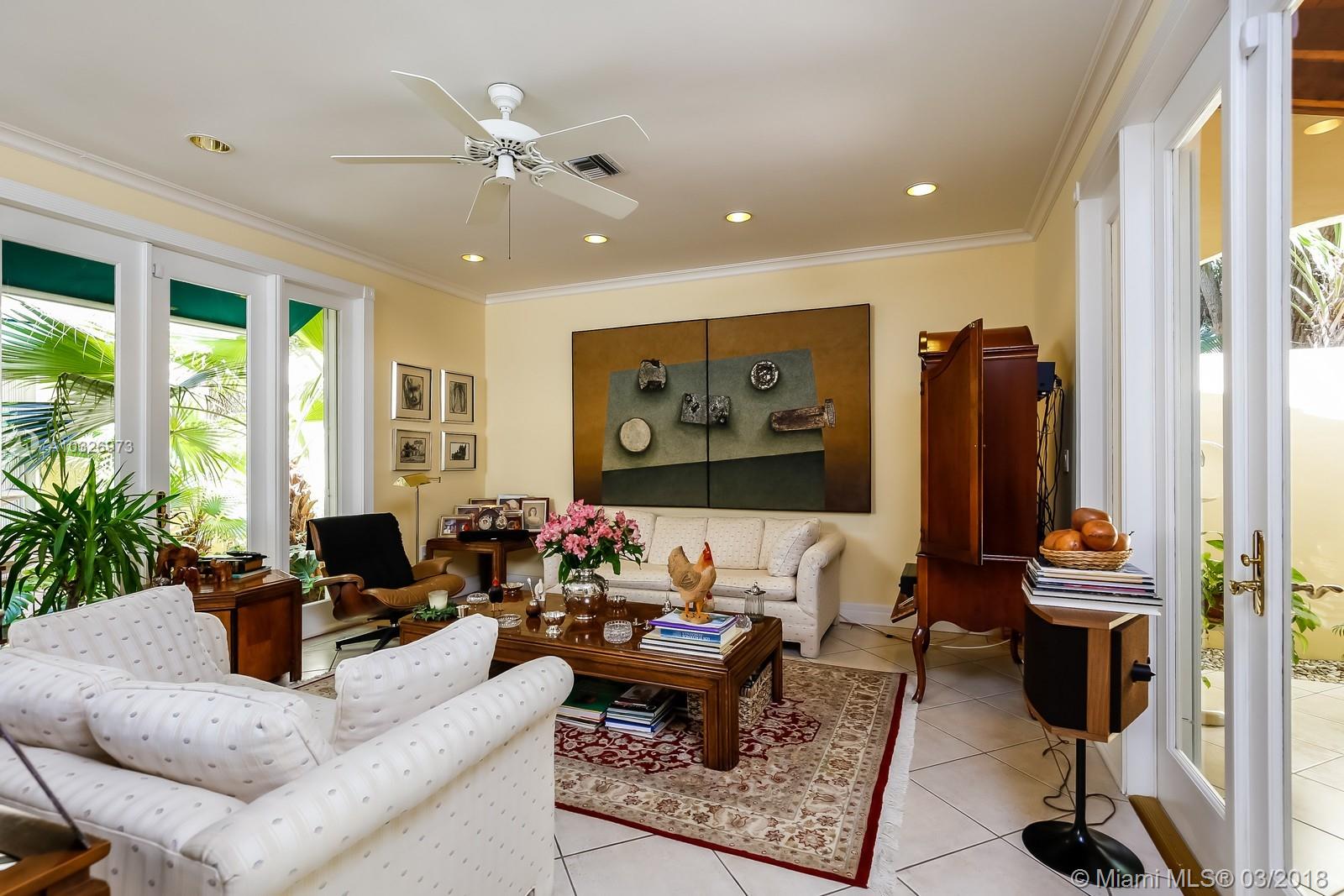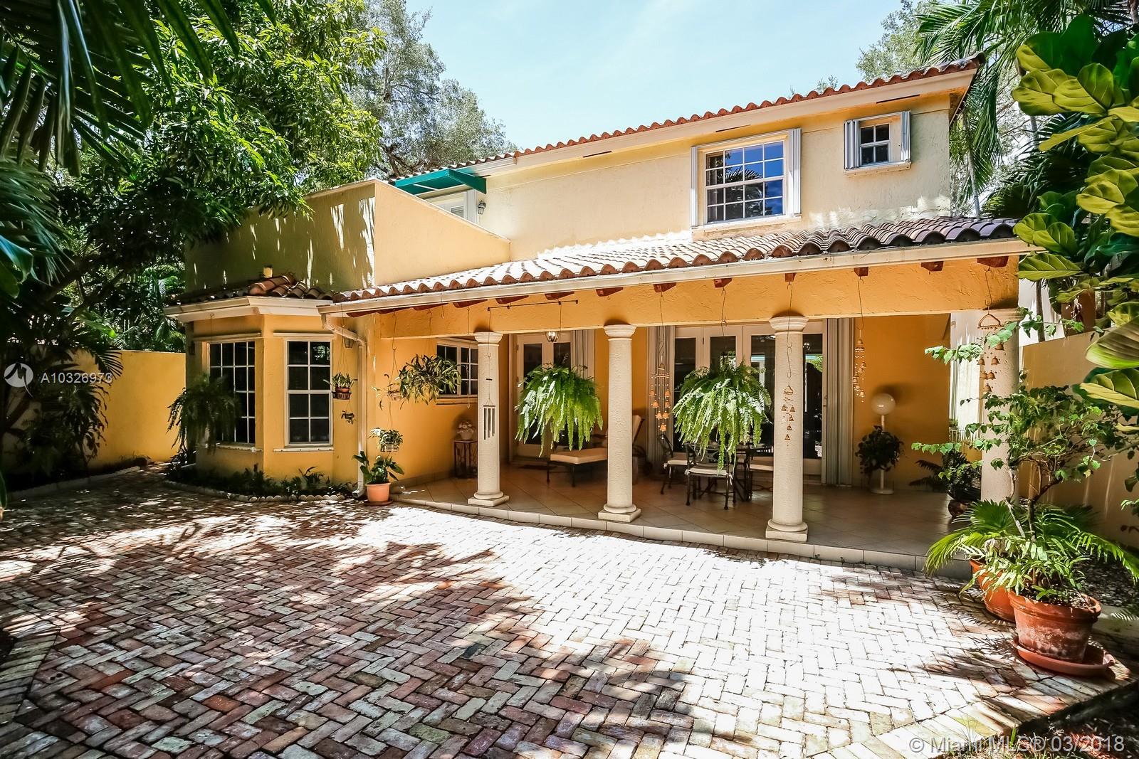 GREAT OPPORTUNITY! Lovingly maintained by the original owner. Superb layout with light filled open spaces. Great room opens to an inviting and spacious covered terrace with a lush garden, accented by by Chicago brick. Working fireplace in the double story living room. One bedroom with bath on the 1st floor and 3 up including a very large master with an adjacent terrace for morning coffee and newspaper! Entire property is walled and gated for privacy and security. Best of all it is on spectacular Espanola Drive, North Coconut Grove's premier street. Just minutes to Brickell, Downtown, Village Center and the best beaches and watersports. Walk to Biscayne Bay (but not in a flood zone!) Ransom school, Fresh Market, Yacht Clubs, waterfront dining +/- 1 mile away!