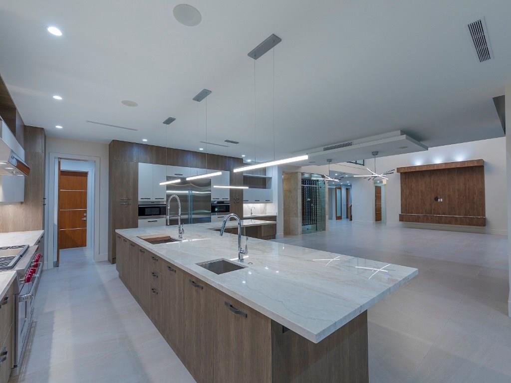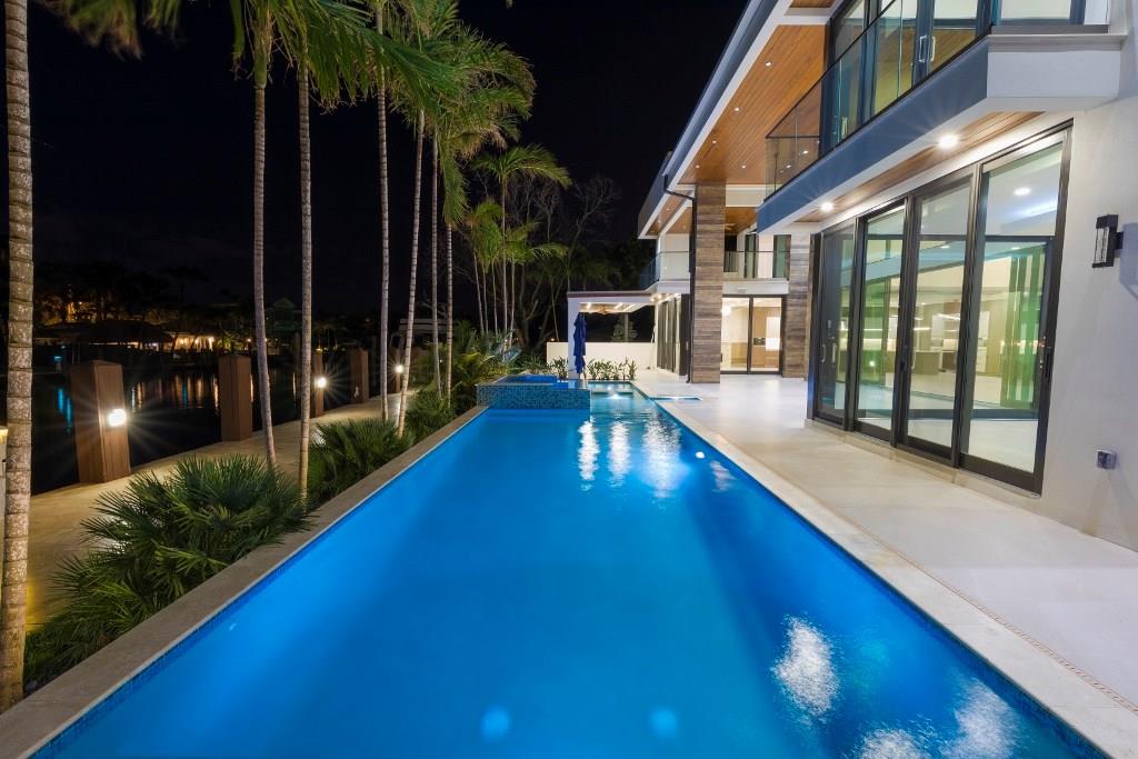 New Modern Masterpiece By Zen (AZD). 3-Story, 8550 sq ft of Luxury & Hi-Technology. Soaring ceilings & open floor plan flows seamlessly to spacious outdoor living area surrounding pool, spa & summer kitchen. All gas kitchen fit for gourmet chef & perfect for entertaining. Master has separate baths & walk-in closets. Third floor entertainment space & balcony with spectacular skyline views. 100' concrete dock berths an 80' yacht on 130' wide canal with quick ocean access. Latest home automation. See video