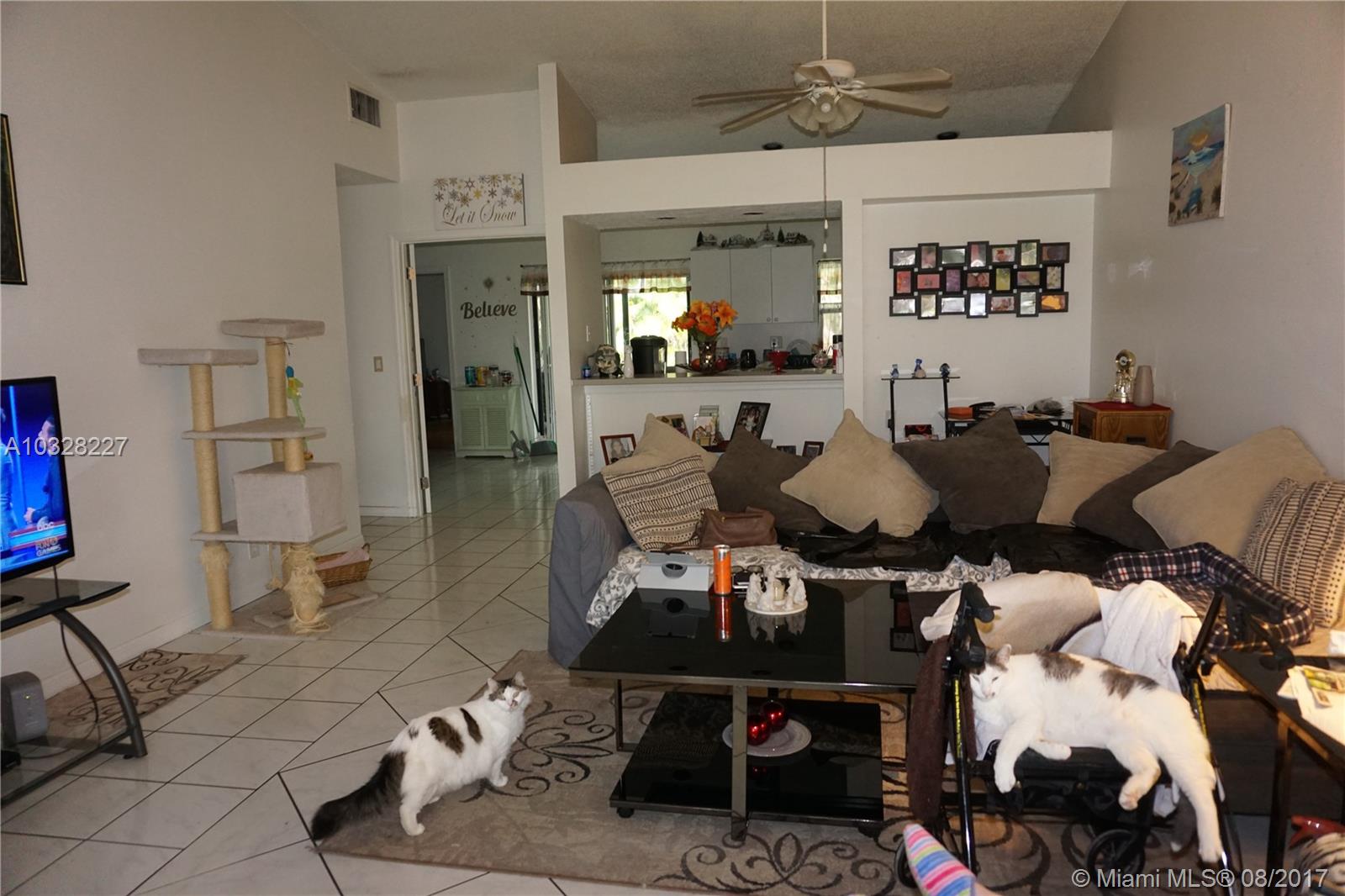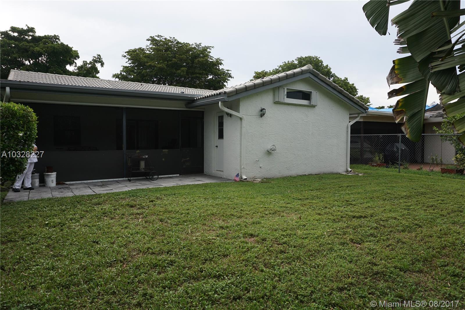 Charming 3 bedroom, 2 bath house in the beautiful area of Coral Springs. Vaulted ceilings, large living & dining room, screened patio and big yard great for entertaining. Bonus room in the garage and room for a car. No association, accordion shutters, extra storage room built on side of house.