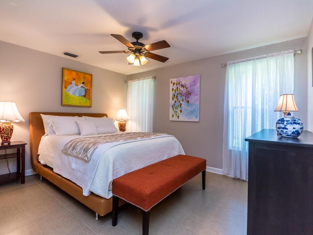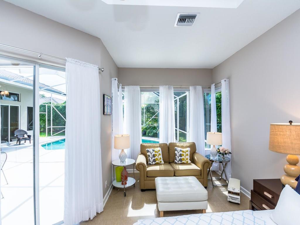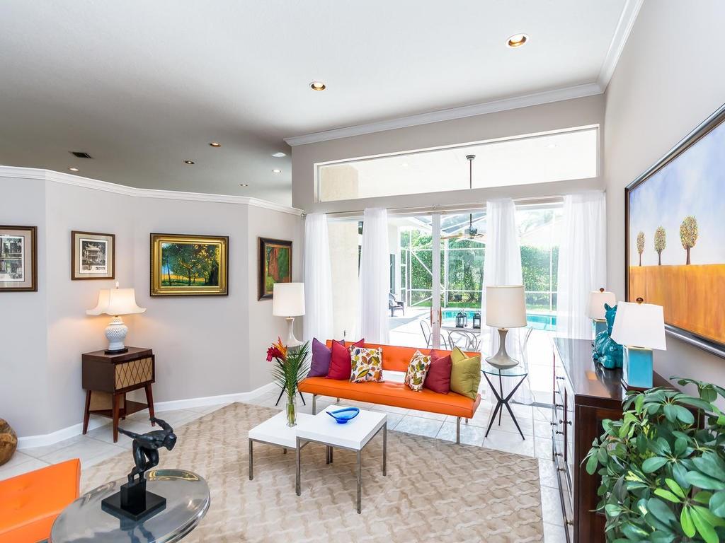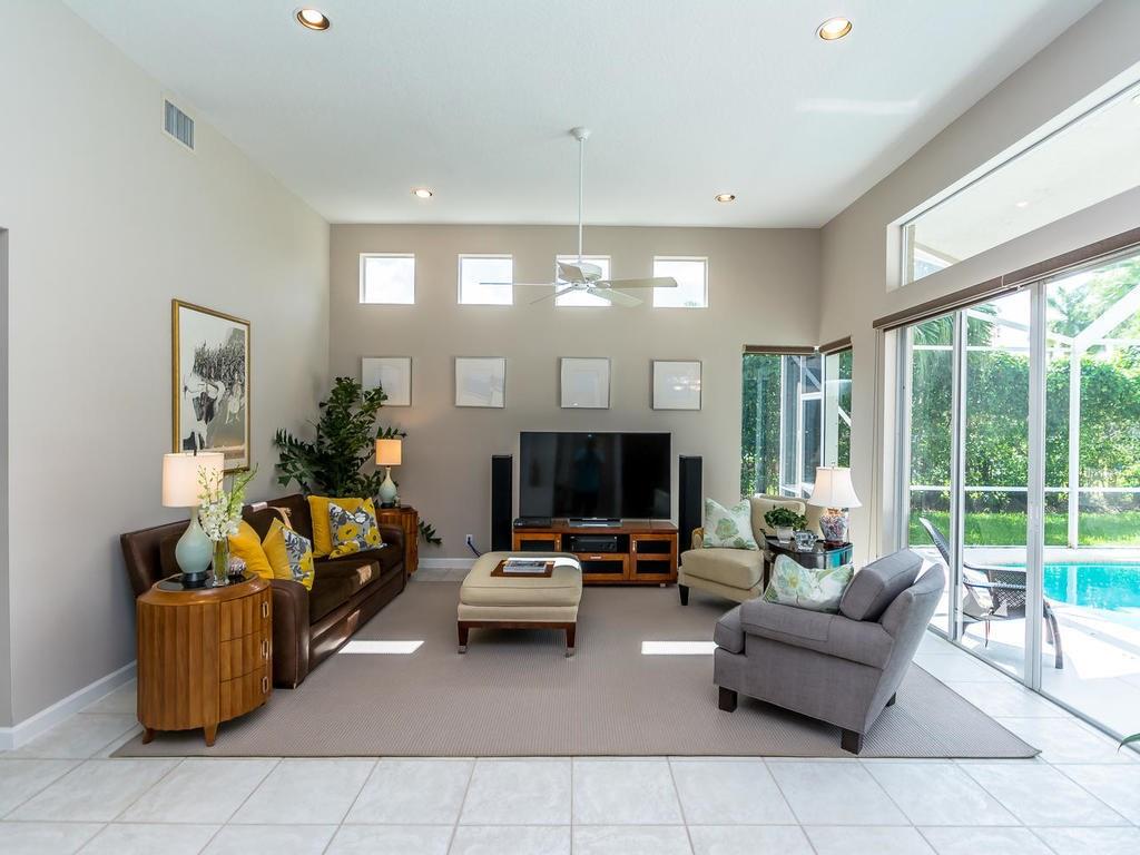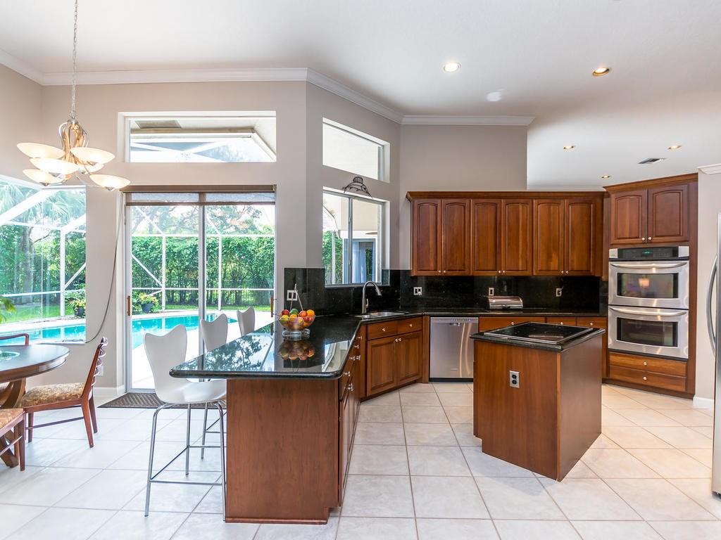This spacious 5BR/3.5BA pool home is located in the beautiful guard gated community of Meadow Run. The updated dream kitchen features granite counters & backsplash, wood cabinets, stainless steel appliances, breakfast bar, island & tons of storage. This clean & well maintained home boasts a triple split floor plan, tile floors throughout, Jack & Jill bath, cabana bath and a 3 car garage. Large family room with lots of natural light. A covered patio with screened pool and completely fenced back yard.