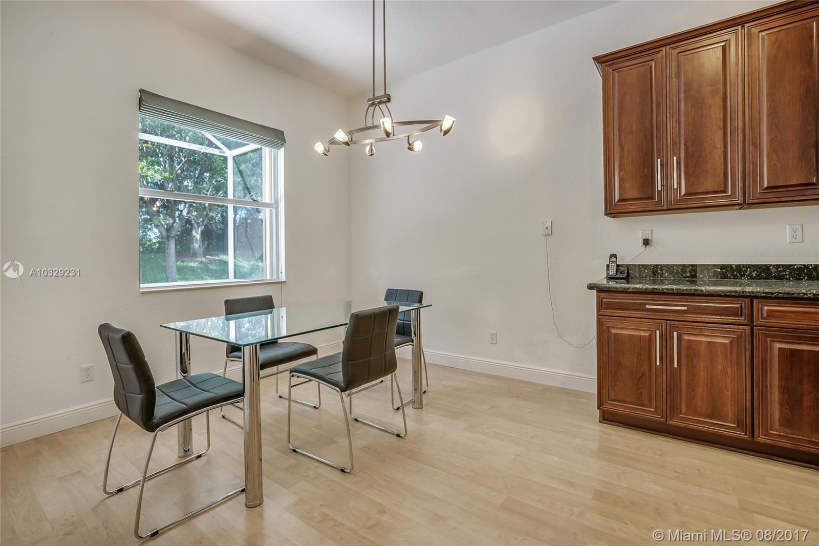 Beautifully maintained, bright & spacious One Story, 3 bedrooms/ 2 full bathrooms with 2 car garages single family home in exclusive gated community Isles at Weston, featuring 2,113 sqft living area. This home has it all, an open floor plan, lots of natural light, High Ceilings, wood laminated flooring throughout, except bathrooms with neutral ceramic tiles. The house features a large master bedroom with spacious master bathroom and jacuzzi tub, his and hers closets. Large Open Kitchen with Cherry woods cabinets, black granite countertops and black appliances. Screened Patio. Isles at Weston Gated Community offers tons of amenities to residents and it's close to great schools, shopping, dinning and highways I-75. Welcome Home!