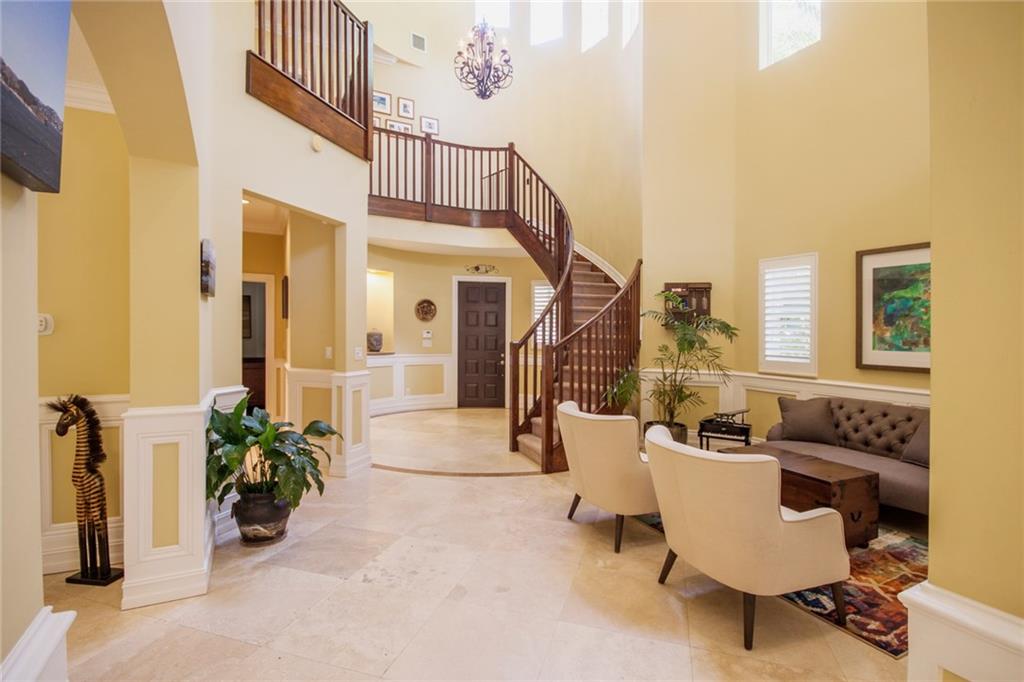 Magnificent corner lot home in the gated community of Saraceno. $80,000 in upgrades! Chefs kitchen with stainless appliances and gas stove. Marble 24" flooring throughout the living area with appointed crown molding in each room. Volume ceilings provide tons of light. The Gorgeous spiral staircase will take you to the additional guest rooms and the huge master with an adjoining sitting area. Custom closets featured in bedrooms. The summer kitchen is awaiting the best of BBQing with room for a pool!