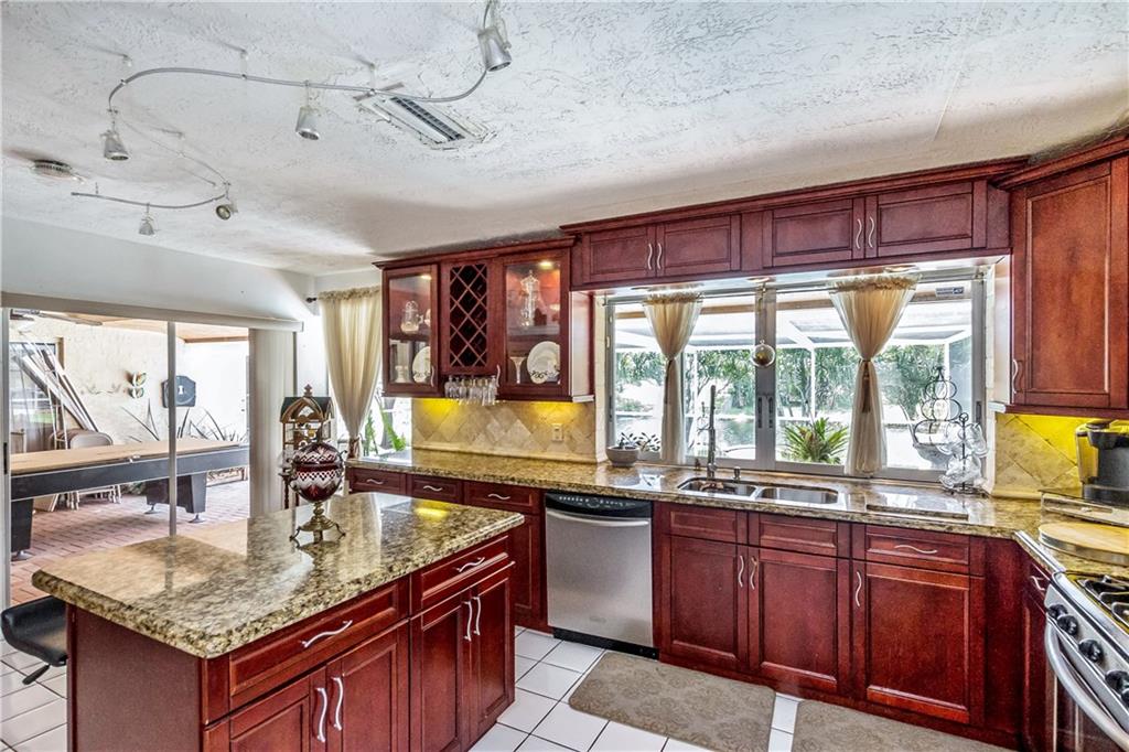 Beautifully updated 3/2 pool home in west Sunrise. Updated kitchen, wood cabinets, granite counters, stainless steel appliances, gas stove. Bathrooms updated w new vanities and tile. Master BR has walk-in closet with cabinetry. Combination of laminate wood and tile floors. A/C only 1 year old with new ducts. 2 car garage partially converted into a small work room. Pool updated w high tech copper filter, minimal maintenance, no chemicals. Waterfront view out of the screened back porch. Close to everything.