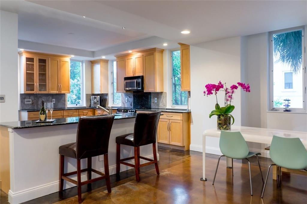 Modern loft style townhouse close to downtownFort Lauderdale. This corner townhome offers a very unique and attractive layout. 3 story design with 2 car garage and family room boasting 17 ft ceilings on the ground floor. 2nd level has the awesome upgraded kitchen with wood cabinets, granite counters and stainless appliances and W/D. 2 br's upstairs with wood beamed vaulted ceilings and updated baths. Refinished concrete floors. NEW AC, new Bosch fridge, dishwasher, new micro and stove. Impact glass