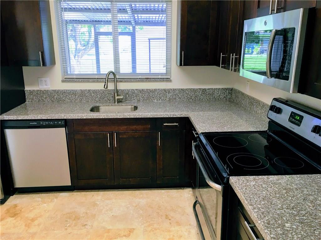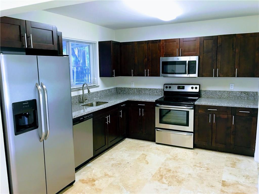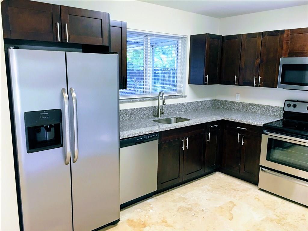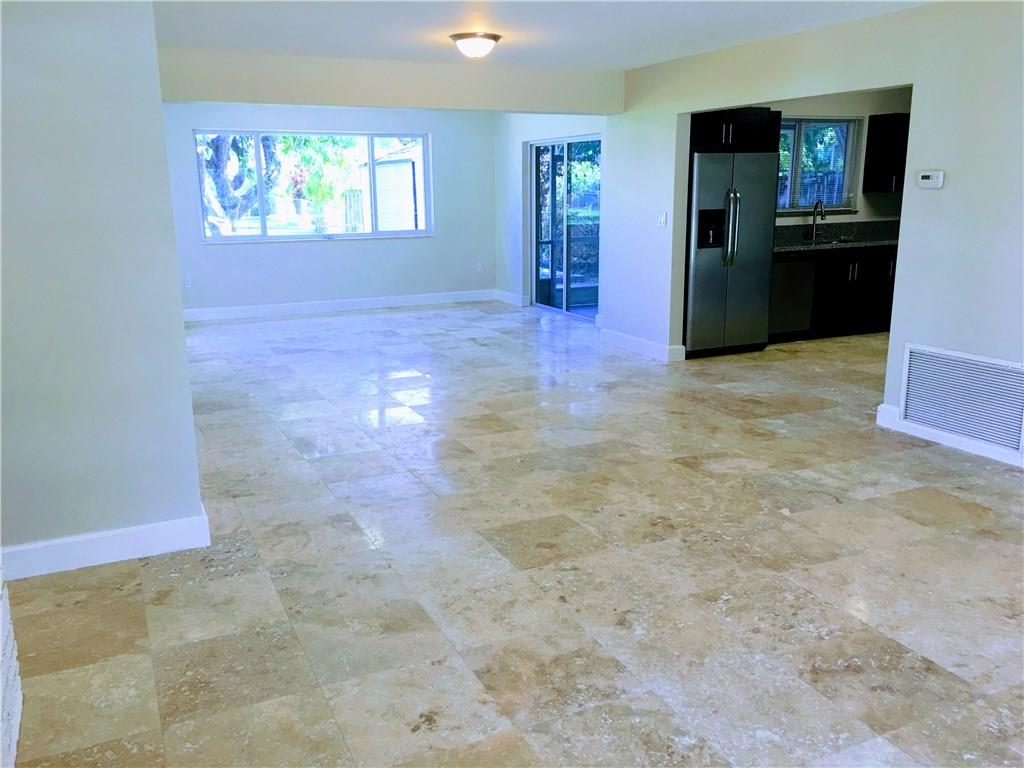 Totally re-done house including a brand new roof and roof structure. House features travertine tile floors throughout, impact windows and impact door to the backyard. It is very quiet inside. Great layout with a split floorplan. All bedrooms are great size with lots of closets and storage space. Living area has large windows on both sides making it very bright and airy. Kitchen is brand new with wood closets and s/s appliances. Laundry has its own room. Perfect house for a family. Book your listing now!!!