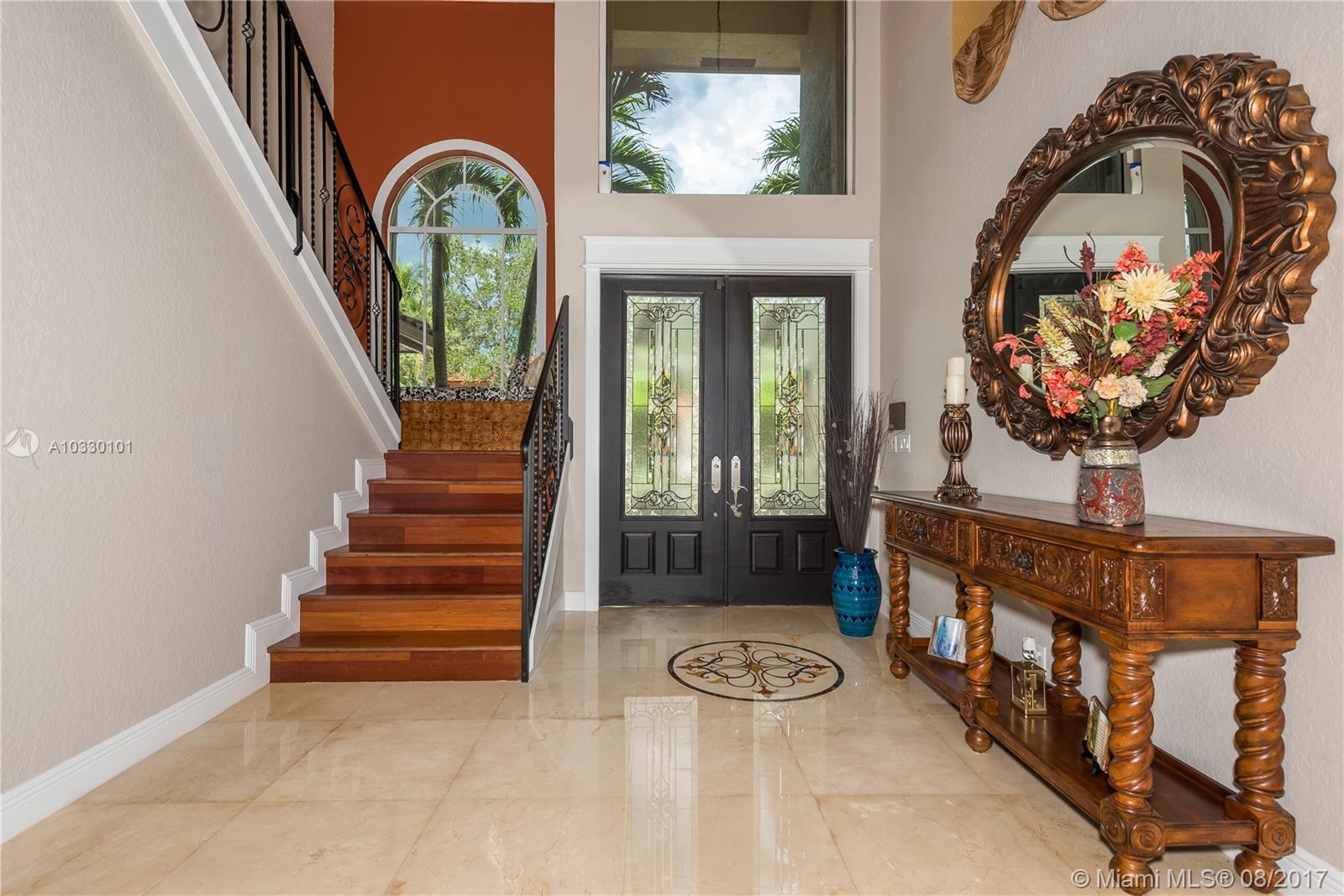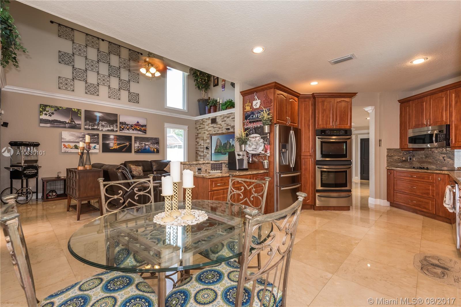 Resort living awaits you in one of the largest and gorgeous custom built homes in Silver Lakes. This home features crema marfil marble throughout the first floor, extra-large Laundry room with tall built-in cabinets, double W/D, eat-in kitchen with granite counters, high-end stainless steel appliances. Expansive Master Suite & Office are on the first level. Second level has Brazilian hardwood cherry floors, large balcony overlooking lake with lighted fountain. 3 bedrooms are spacious and a fantastic play/Billiard room. Breathtaking patio and pool area with plenty of space to entertain. Comcast Internet included with HOA. Panel shutters first floor/Accordion shutters second floor. Beautifully landscaped with LED lighting. This home has it all!