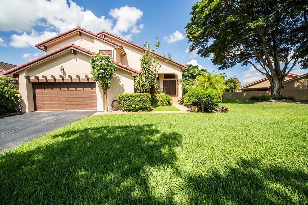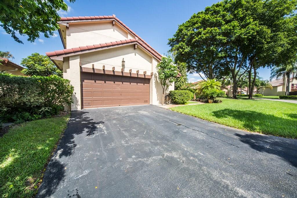 Beautiful home w/ private, lushly landscaped, enclosed back yard, surrounded by well-maintained green common area*roof 2008*one bedrm & full bath on first floor,*master suite, 2nd bedrm & full bath upstairs*remodeled kitchen w/island & SS appliances*formal dining room leads to gracious living area with high vaulted ceiling and attractive fireplace*master suite include sliders to balcony & huge bathrm * three closets*accordion shutters*roof 2008*guard gated community w/clubhouse, pool, tennis & more!