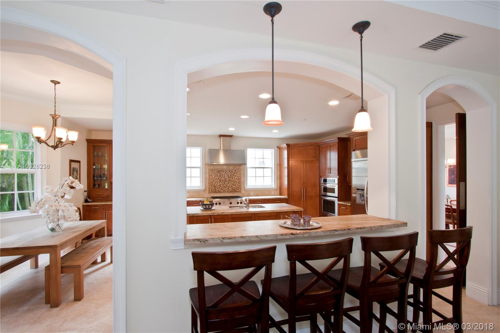 Newer construction with a classic flair in South Grove! Key West architecture meets modern luxury in this superbly warm and functional 6 bed/6.5 bath home. All 6 bedrooms are equipped w/ en-suite baths and walk-in closets. This spacious 4,690 sqft under air home is thoughtfully planned for living and entertaining. Two-story ceiling welcomes you into a formal living area. Just beyond lies a sizeable family/Fla room. A chef’s delight, the kitchen offers gas range, built-in wine cooler, granite counters, wood cabinets and generous island+bar. The gracious formal dining room is fit for exquisite dinners. Impact glass, metal roof, pool w/ spacious yard (lot is 9,380 sqft) located in one of Miami’s most sought-after neighborhoods! LA Sqft per appraiser's measurements and Adj sqft per tax roll.