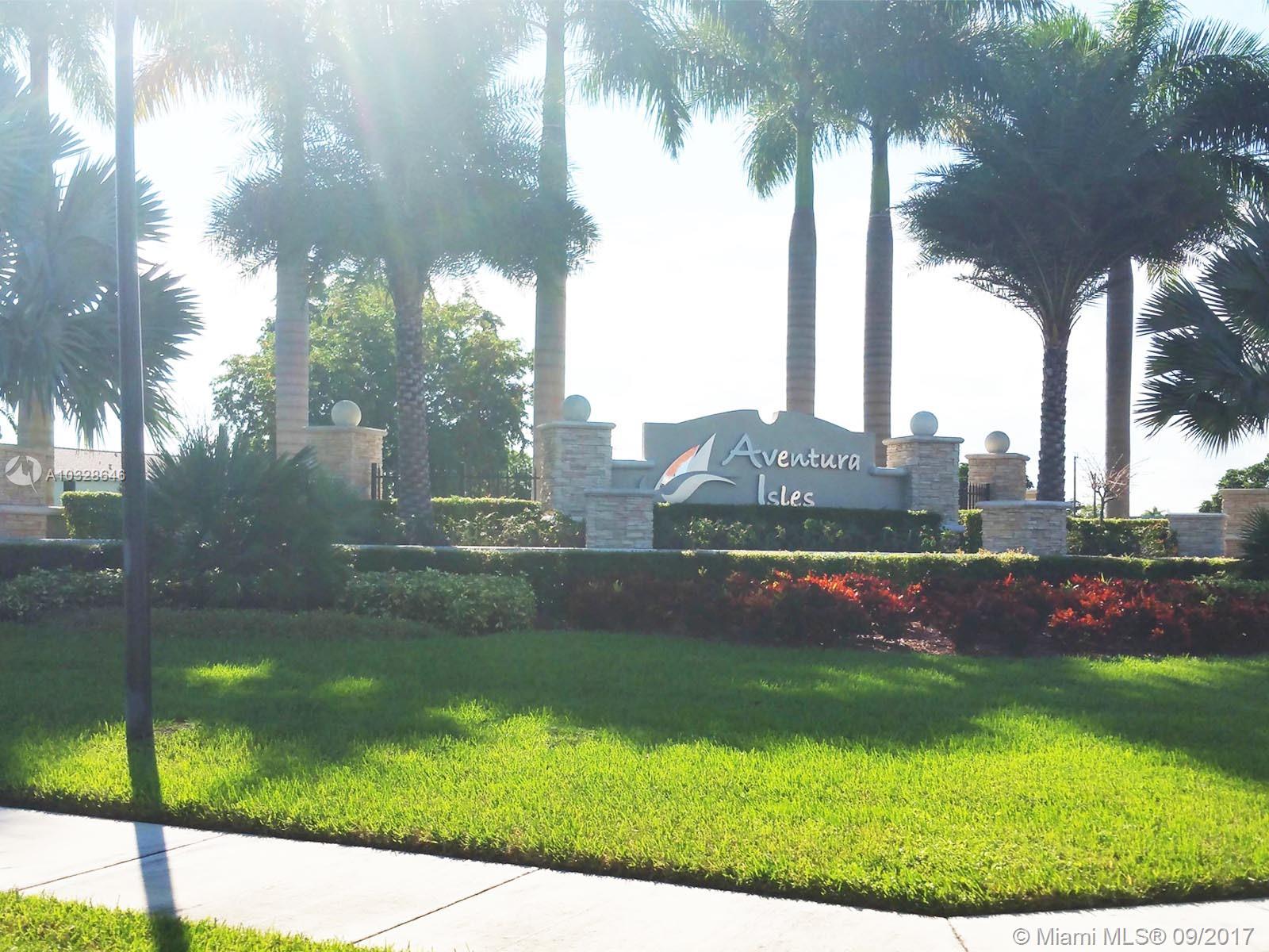 Aventura Isles 4 beds+ den /3 baths, corner unit, fully upgraded, wood floors, no carpet, S Steel appliances, extended counter top, big pantry. Lots of closets. Living room with direct access to the backyard. Fenced for privacy. Great location in the community. 24 hrs security. Community pool heated, three playgrounds, beautiful landscape around 4 lakes. Walking and jogging trails. Pet-friendly community.