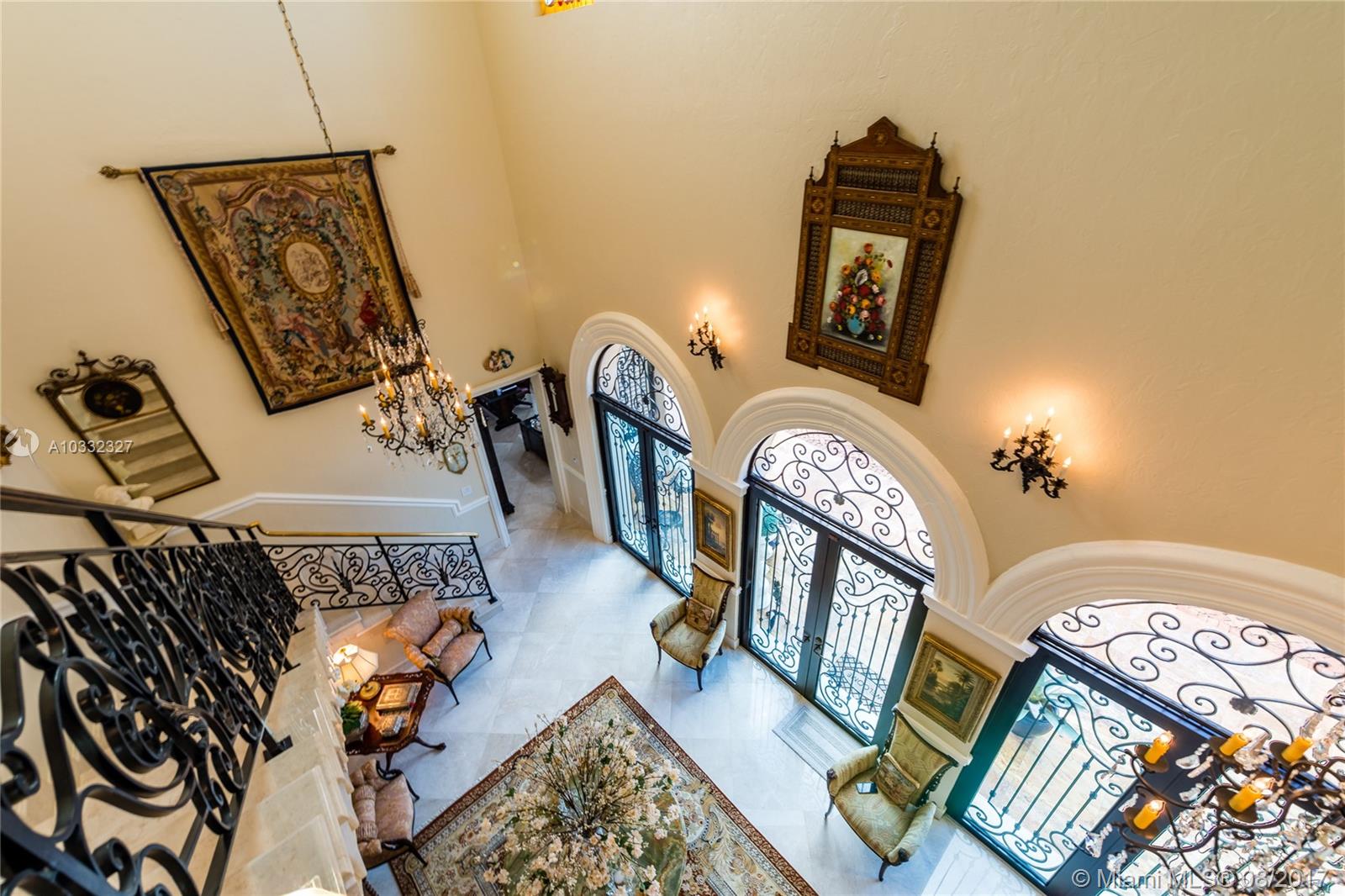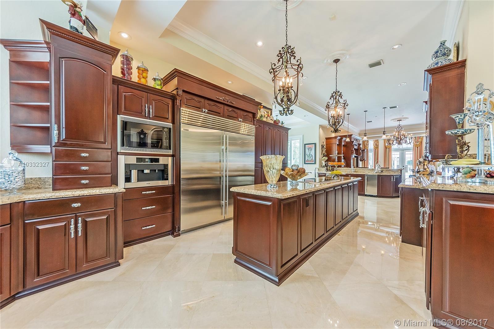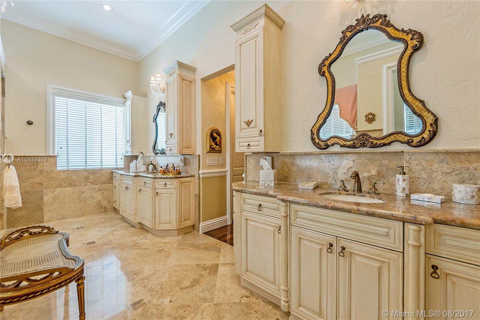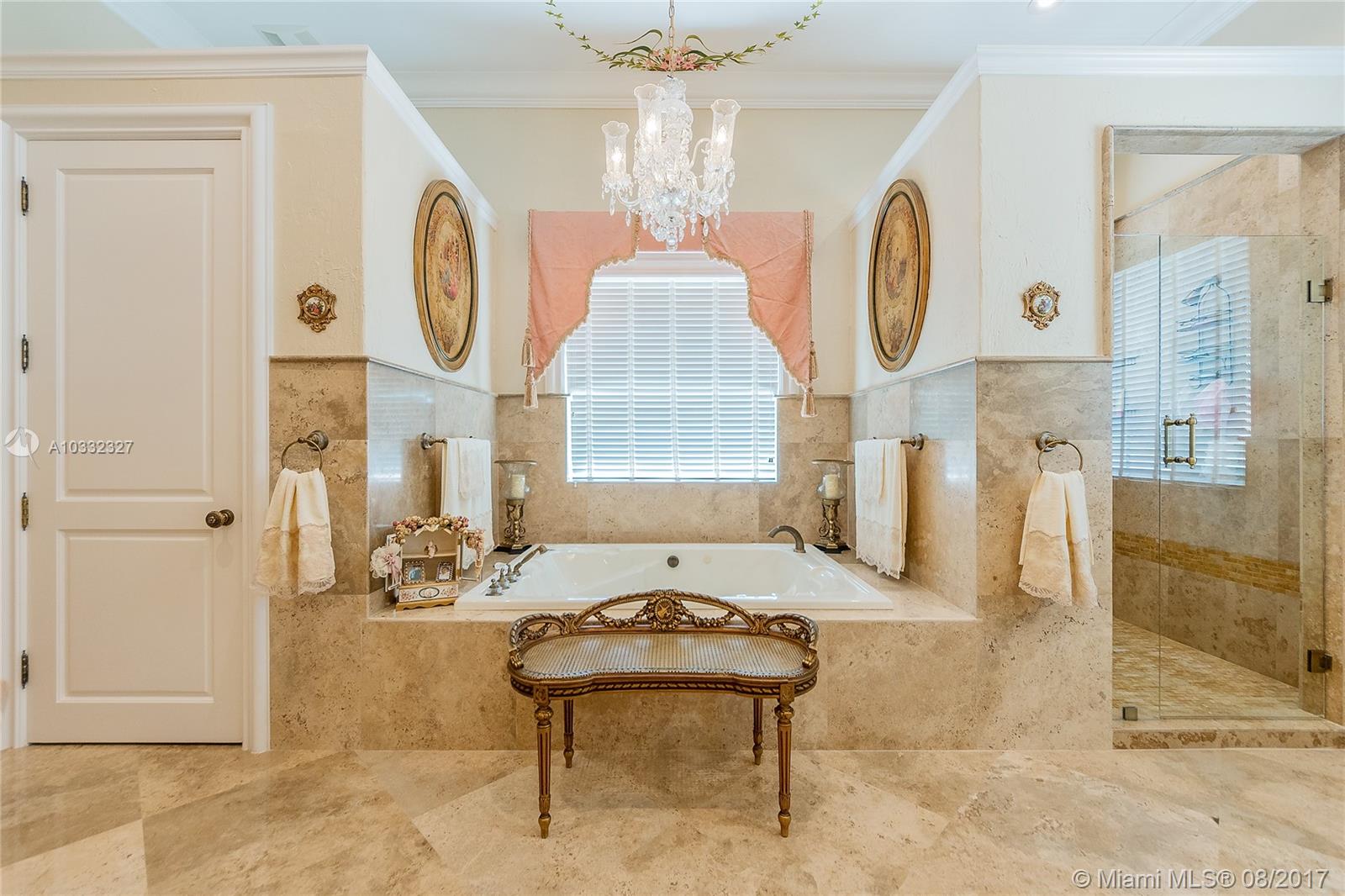 Elegant Mediterranean Estate. Situated on a pristine corner lot in N. Pinecrest. Upon entering this luxury estate, you will enjoy feature such as a exquisite flowing fountain, dramatic 2-story foyer & grand living room w/fireplace. This immaculate home features a open gourmet kit. w/top of the line appliances w/ breakfast area, cabinetry & granite counter tops, ornate crown moldings, coffered ceilings, summer kit., courtyard, large suite style bedrooms & grand master suite, marble & hardwood floors, balconies, large pool & spa, manicured grounds.
