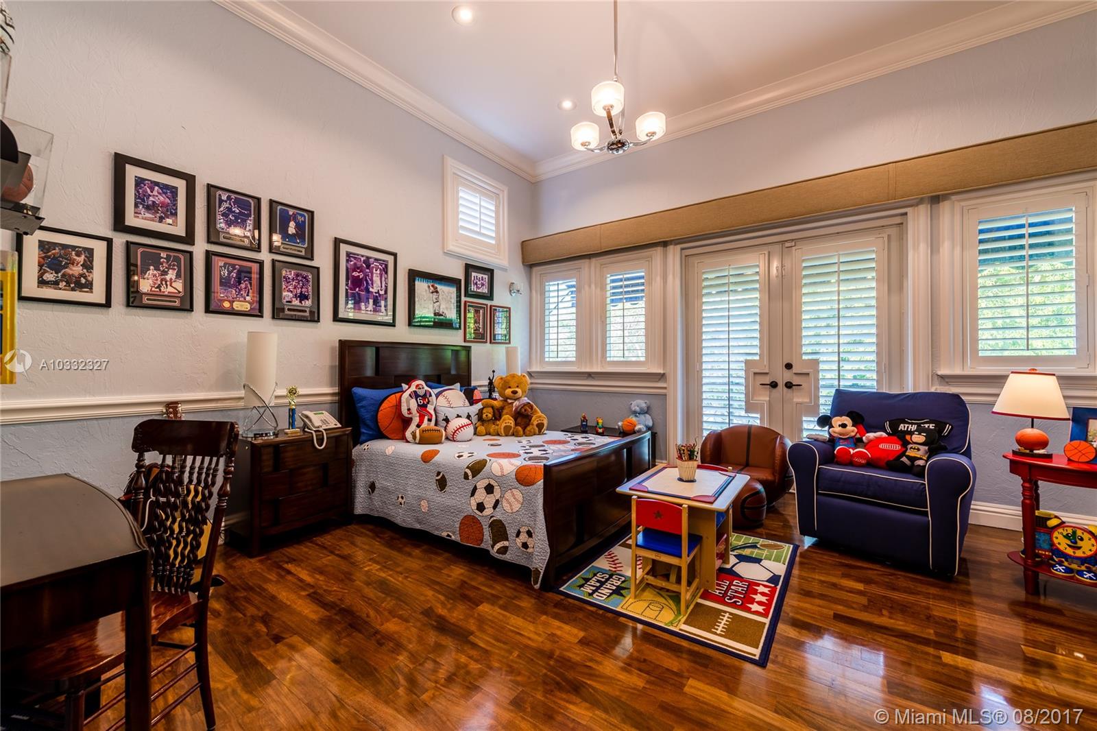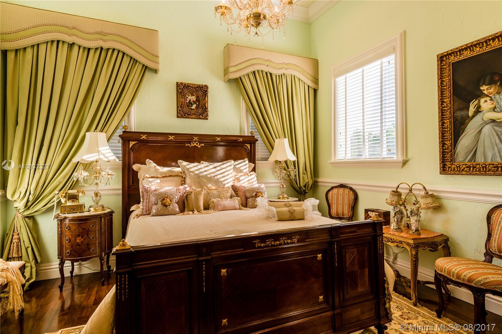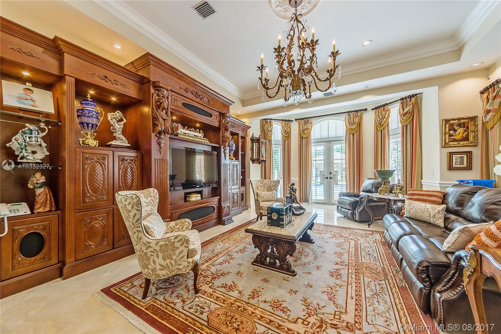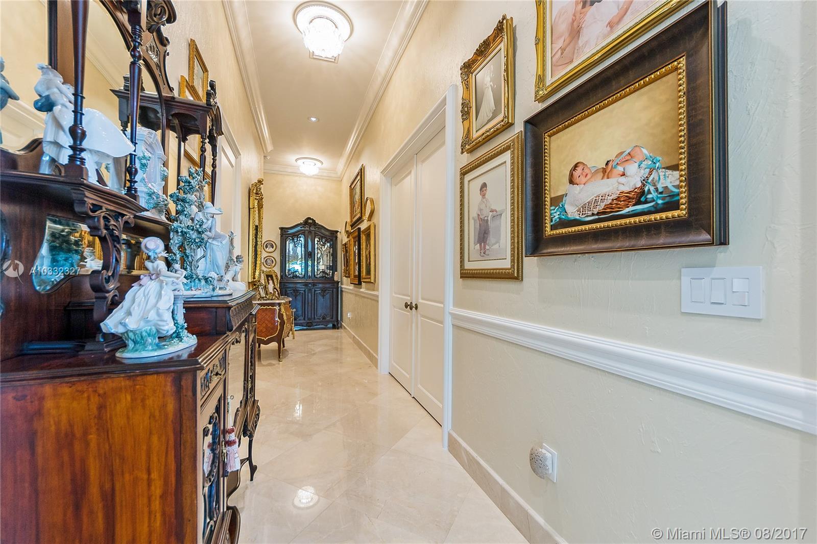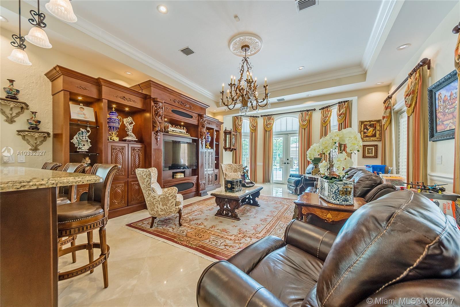 Elegant Mediterranean Estate. Situated on a pristine corner lot in N. Pinecrest. Upon entering this luxury estate, you will enjoy feature such as a exquisite flowing fountain, dramatic 2-story foyer & grand living room w/fireplace. This immaculate home features a open gourmet kit. w/top of the line appliances w/ breakfast area, cabinetry & granite counter tops, ornate crown moldings, coffered ceilings, summer kit., courtyard, large suite style bedrooms & grand master suite, marble & hardwood floors, balconies, large pool & spa, manicured grounds.