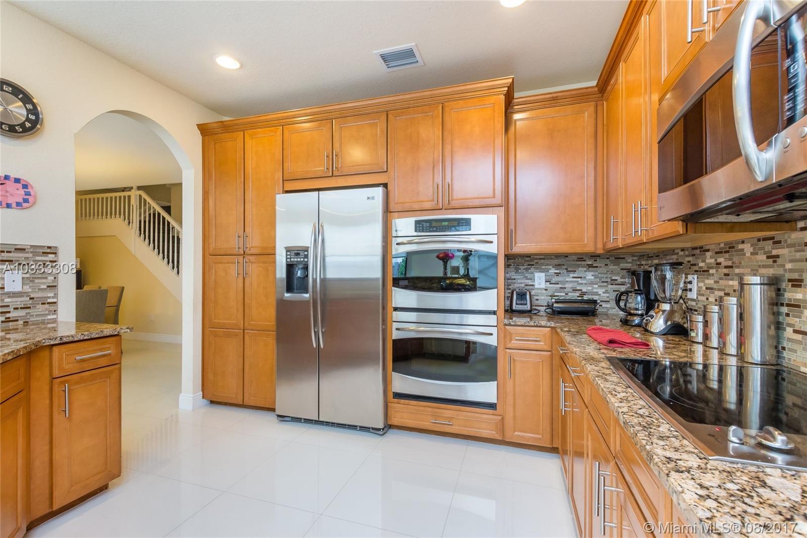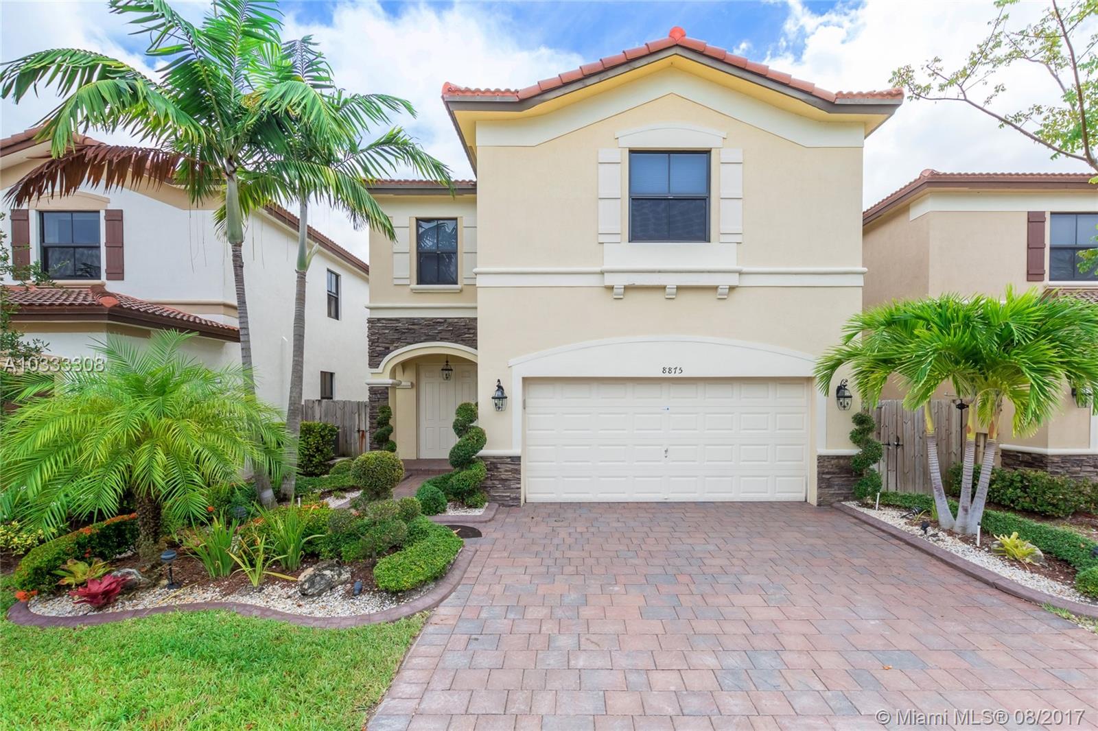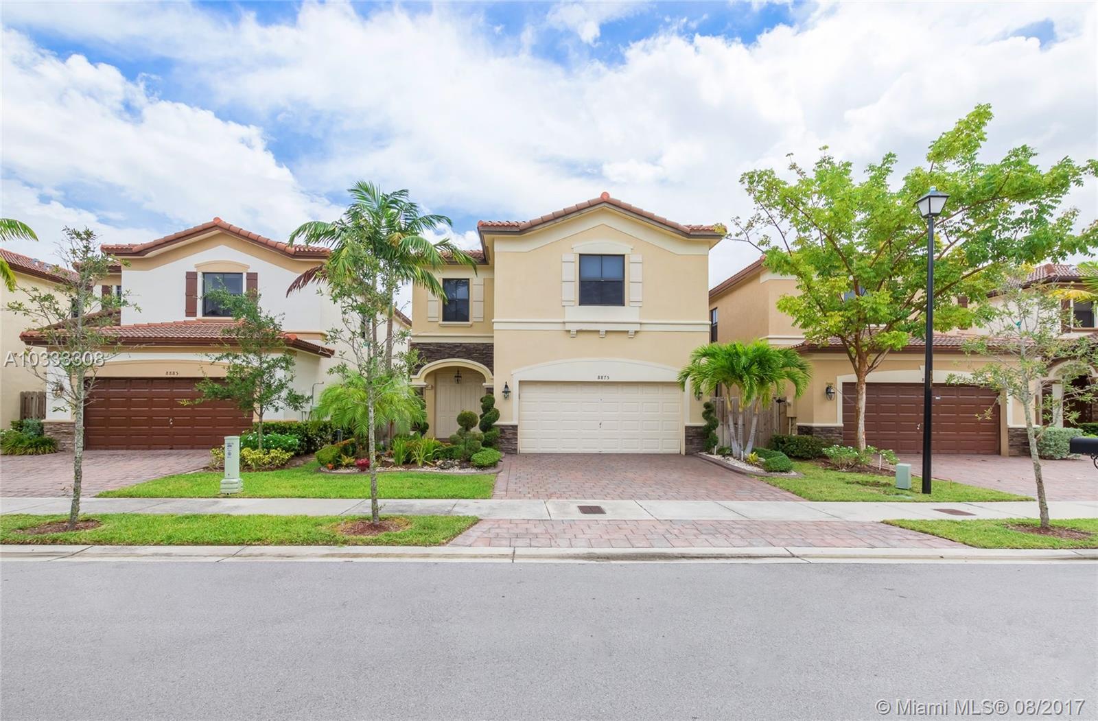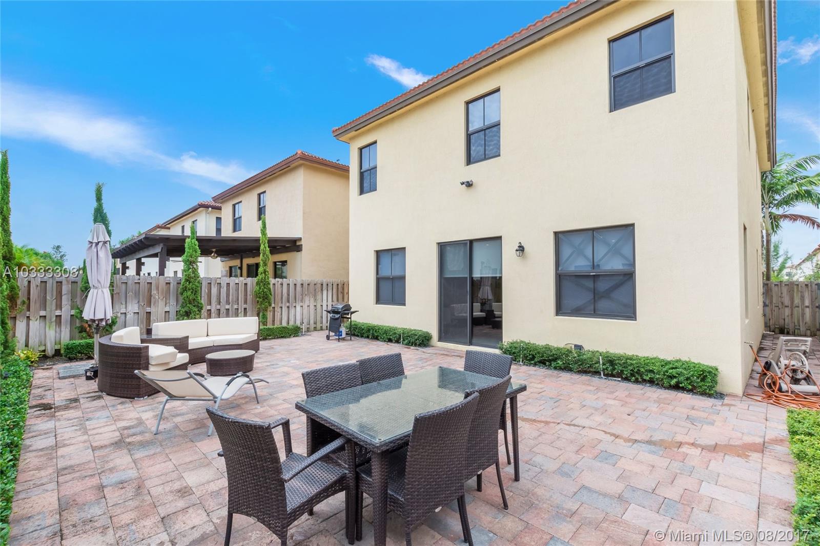 This immaculate, professionally-decorated 2-story home with open space plan and private patio invites comfort, and exudes modern elegance. With 4 bedrooms, 3 and a half baths, generous living space and stylish finishes, you'll enjoy a perfect setting for relaxing and entertaining. Open kitchen with Italian cabinetry, wine chiller and marble counter tops, overlooking the large family room and pavered patio. Beautiful porcelain floors and plenty of natural night flow throughout the home's open, airy layout. Ceramic tiles on stairs and bedrooms upstairs. Master bedroom with large walk in closet. Gated and quiet community with A+ schools. Community club with over 28,000 sft of amenities which include: gym, tennis, billiard room, children's splash zone and much more will be ready this year.
