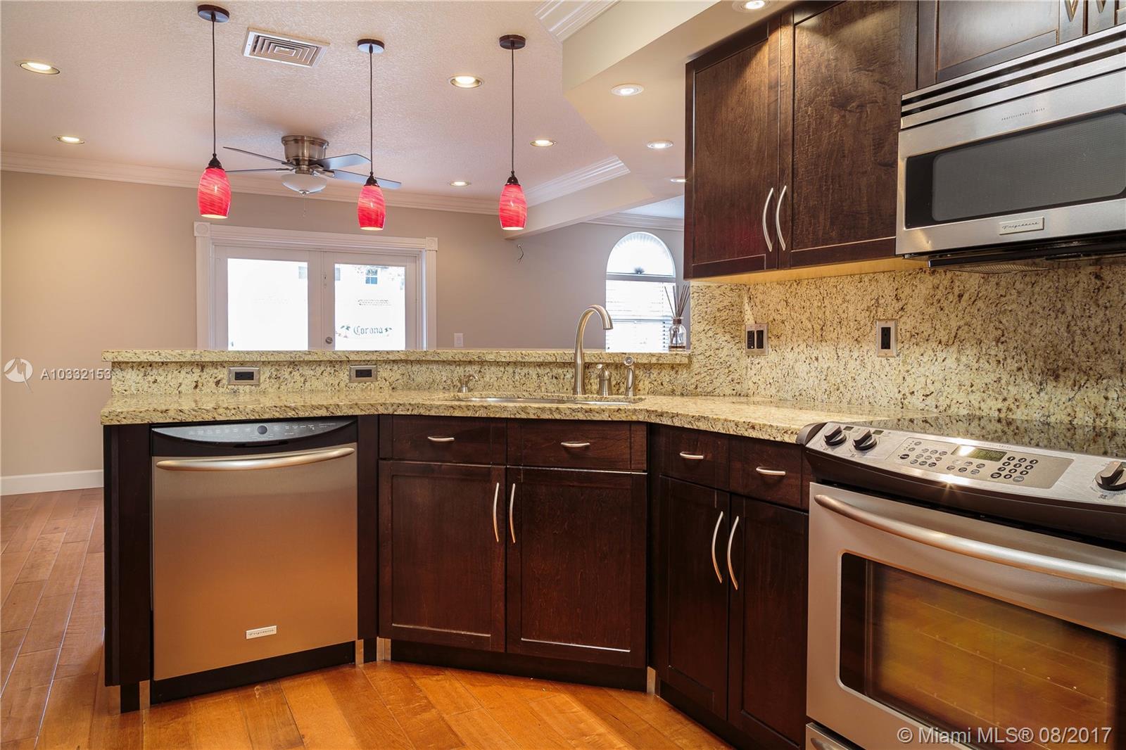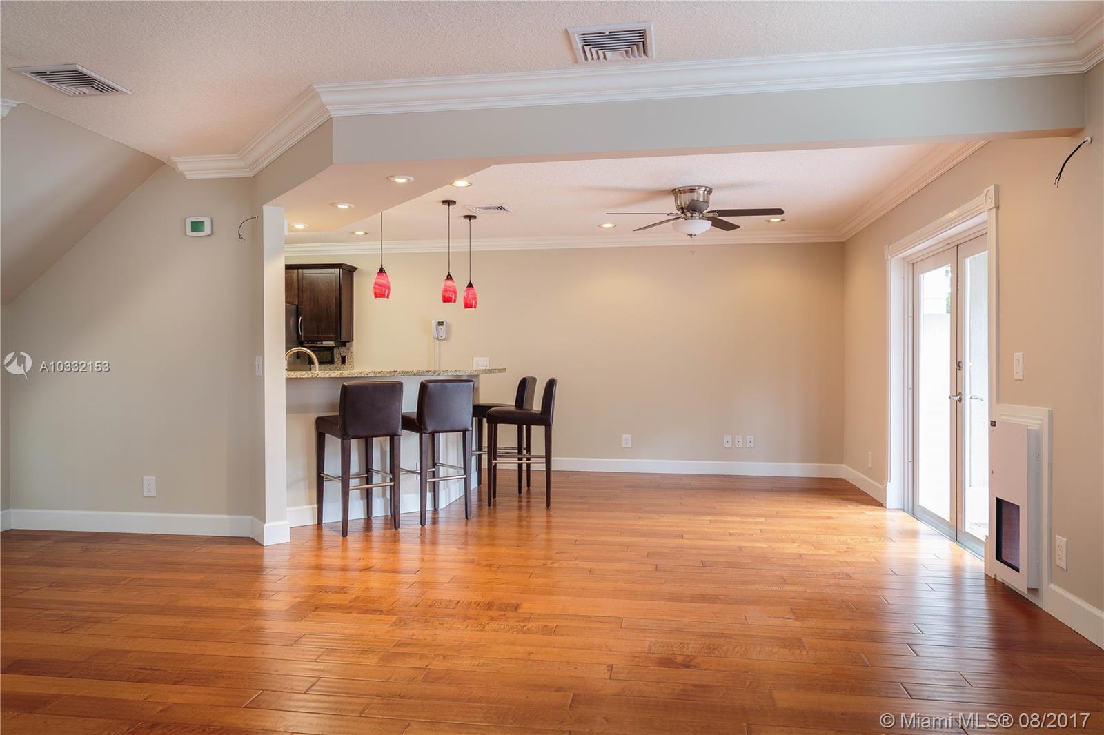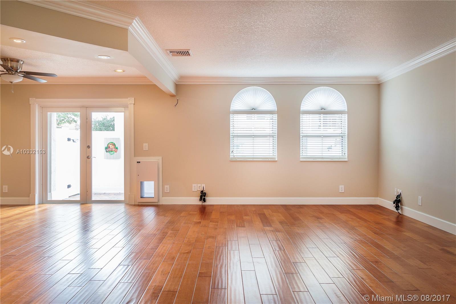 Beautiful and updated corner townhouse. Ready to move in, and all the work has been done for you! Wood floors throughout, granite kitchen, upgraded baseboards and moldings. Entertain in the lighted private patio/courtyard which opens off of the kitchen and great room. This home is centrally located with easy access to I-75, Palmetto Expressway, Florida Turnpike, shopping, parks and dining. The community is well-kept, safe, lovely, and includes a community pool and child's play area.