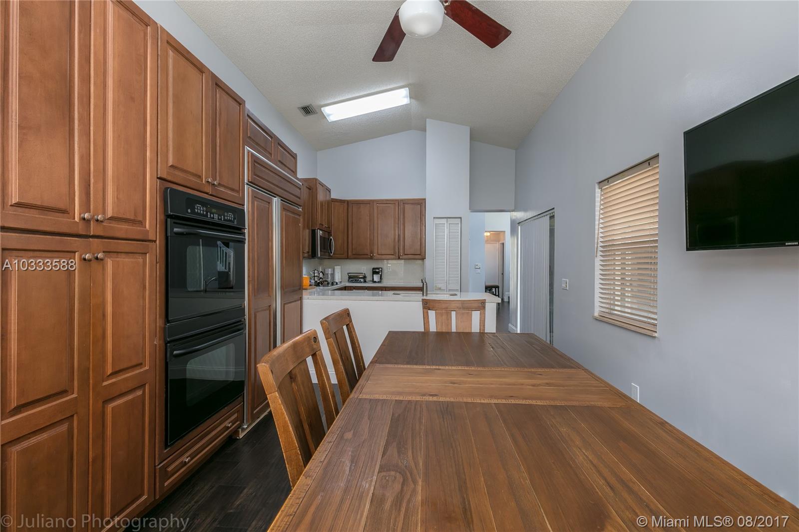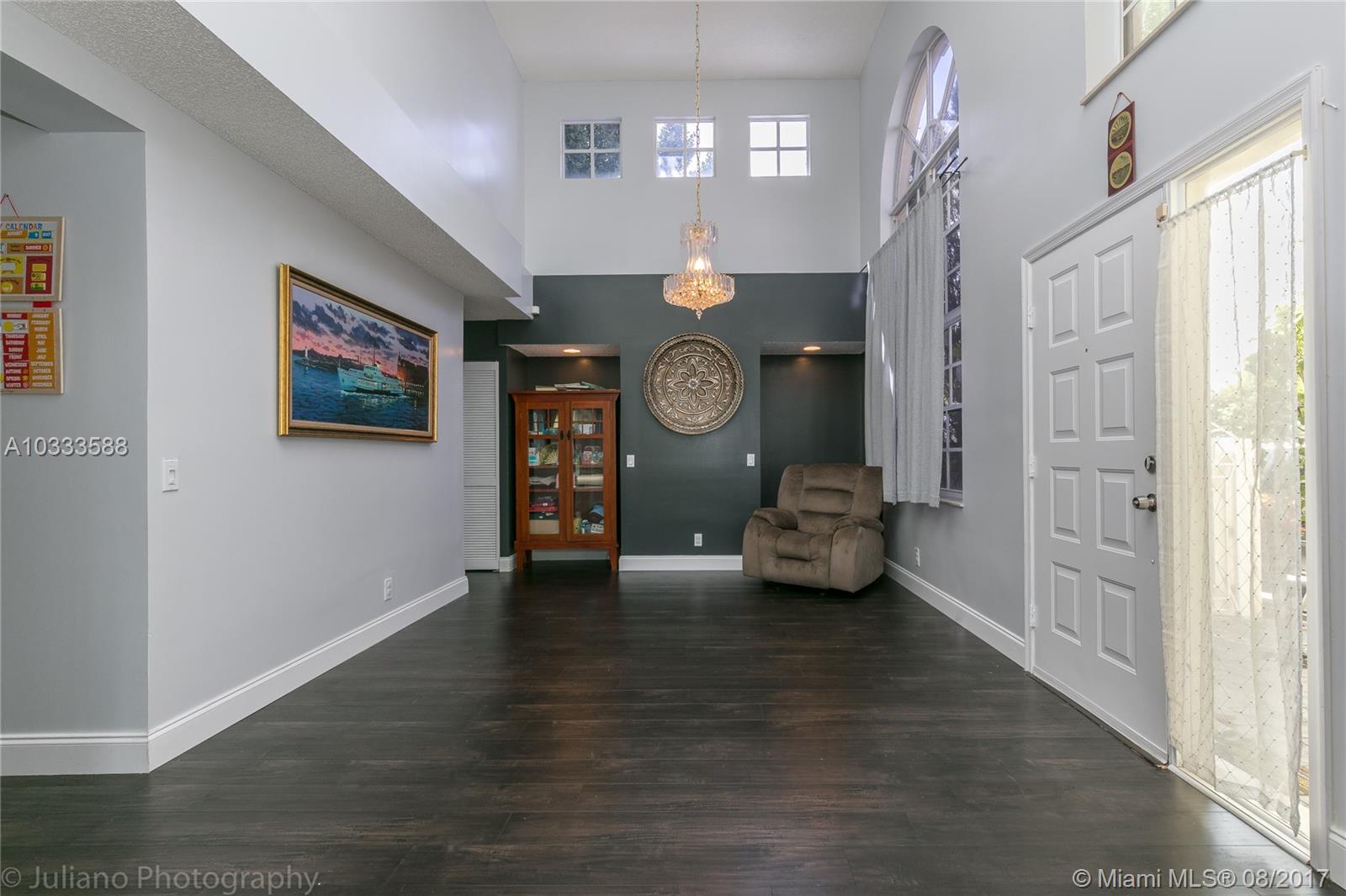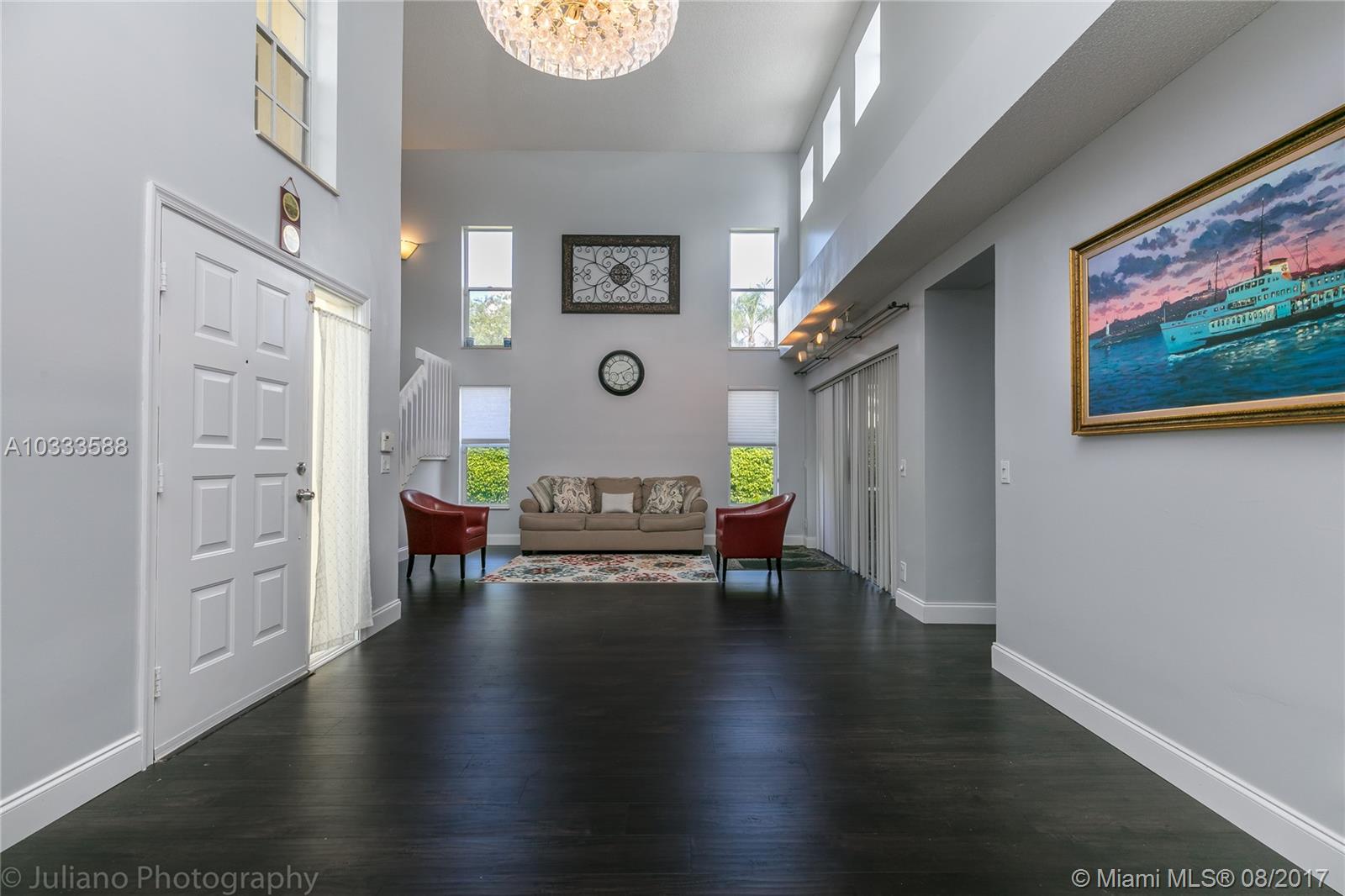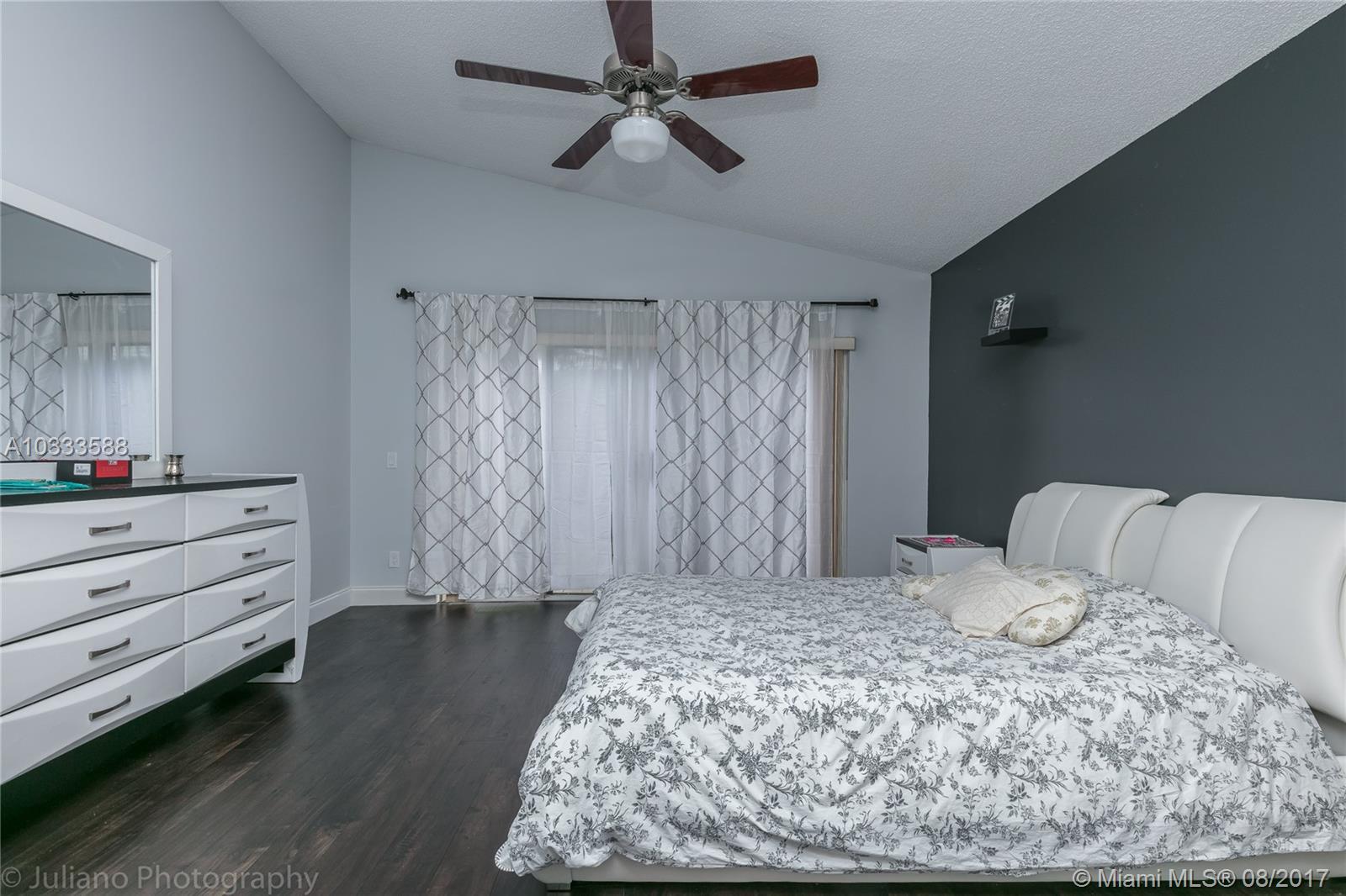 This beautiful 3 bedroom home offers elegance and sits on a large corner lot in a cul-de-sac. It is one of the best priced homes in Grand Palms with over 2,000 sq feet. The home was recently upgraded with new kitchen, bathrooms and flooring. The backyard has a large screened in patio perfect for entertaining and is surrounded by a high ficus fence for privacy. The community of Wilshire in Grand Palms offers great amenities such as free basic cable, basic internet, ADT security system, full landscaping services, guard gate. Home features 2 new A/C units, new car garage doors and new kitchen appliances. Grand Palms has golf course, tennis, soccer and a gym that residence enjoy in this beautiful community. Close to shopping and restaurants in Pembroke Pines. Great location. Price to sell!