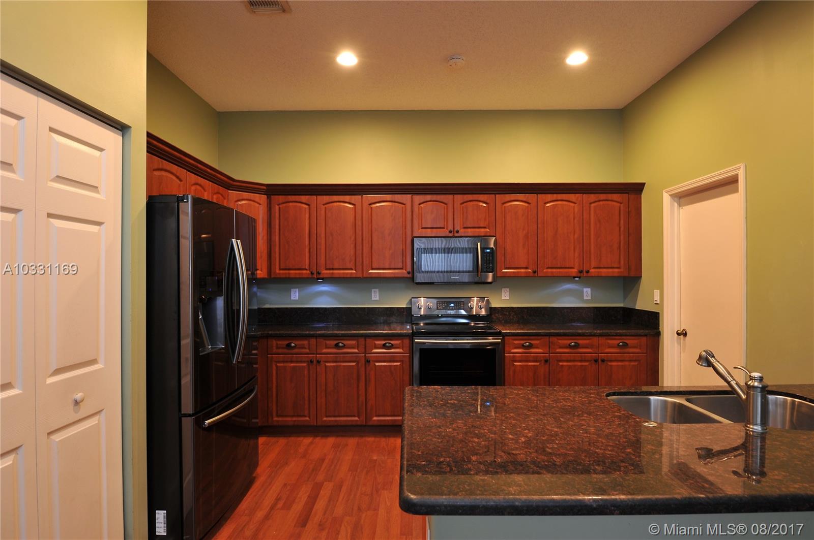 Well maintained 3/2.5 home in sought after community of Mapleridge/Hollywood. Located near major highways, beaches & Ft. Lauderdale Int’l airport. A short walk to the front gate & nearby houses of worship just beyond. Home on oversized lot with a large patio & room for a pool. Family room adjacent to kitchen. Upstairs loft can be an office or kids play area. Downstairs flooring is tile, laminate upstairs. Beautiful wood kitchen cabinets, granite countertops & black stainless steel appliances (still under warranty). A/C replaced in 2013 & water heater in 2012. HOA maintains front lawn.