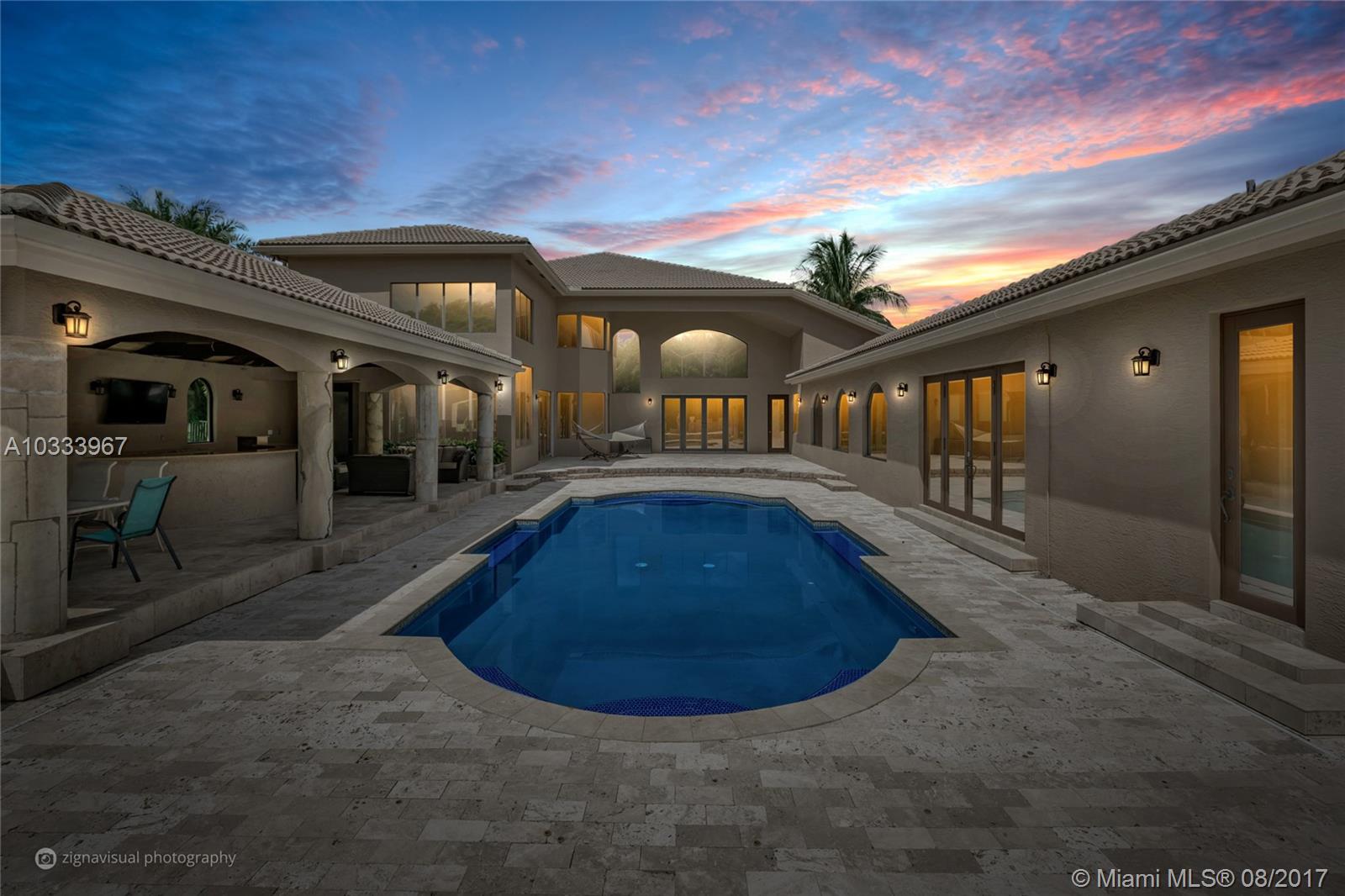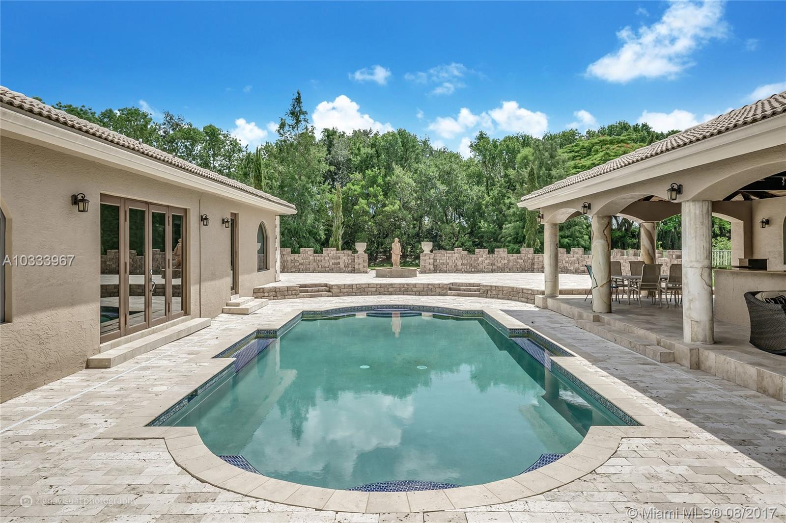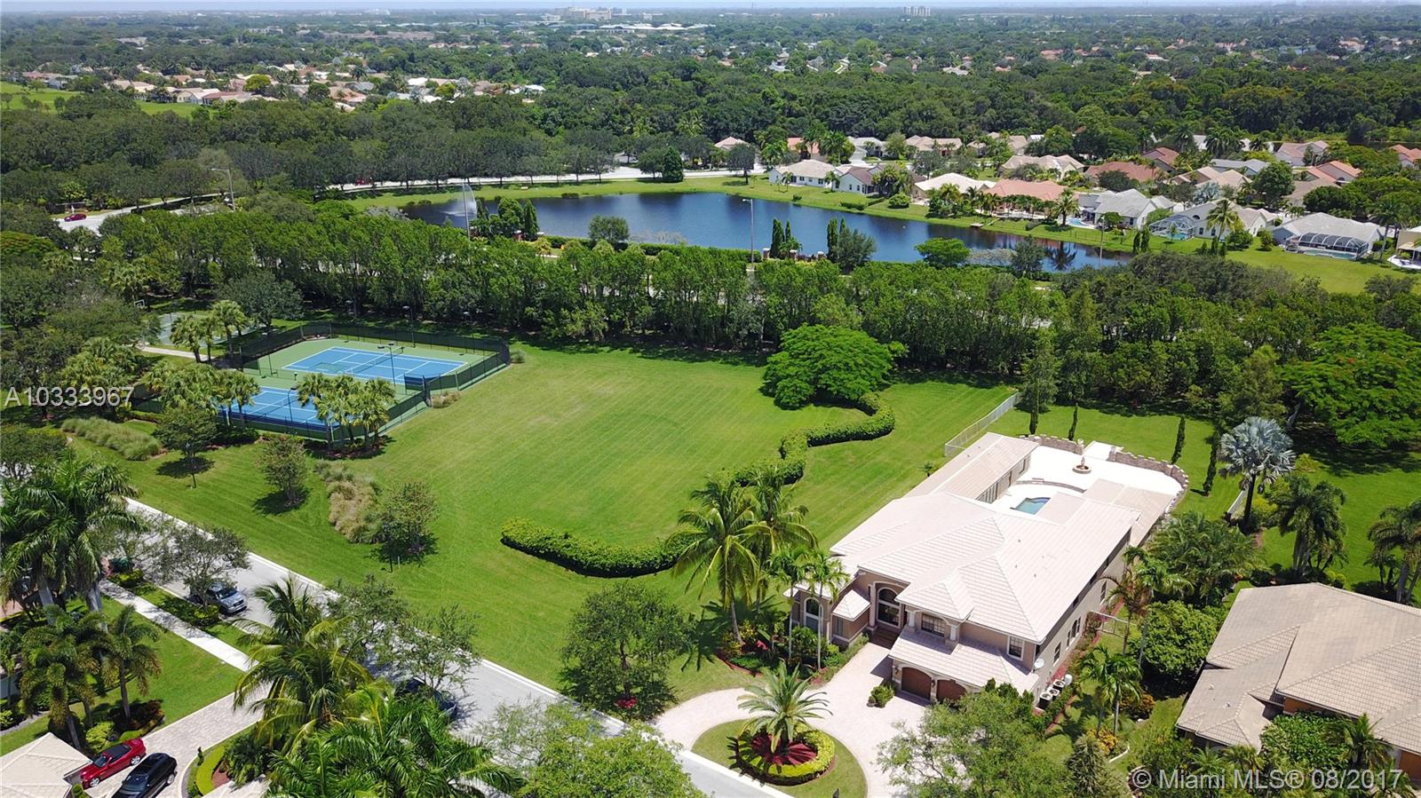 Exquisite Renoir model estate with 6 beds, 5.5 baths, office, formal dining room and loft. Largest model, plus has an entire wing added w/extra bedroom, gym, steam room, in-ground Jacuzzi, and covered outdoor summer kitchen. Features large pool surrounded by Italian Cypress trees. Enter interior to beautiful marble and Brazilian Cherry wood floors, kitchen granite counter tops, designer SS appliances. Huge loft perfect for a kids playroom, pool table. Roman tub in master bath. French doors all hurricane proof, plantation shutters, 20-foot vaulted ceilings, & 3-car garage. Long Lake Estate in A-rated school district, has playground, tennis/basketball courts, 24-hr guard gate & more. PRICED TO SELL!
