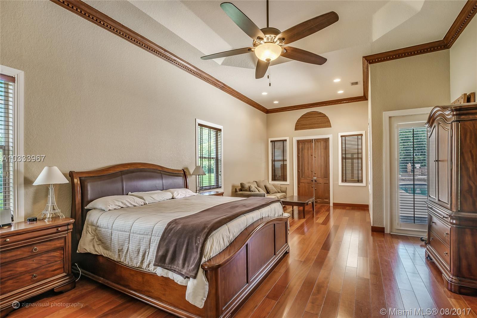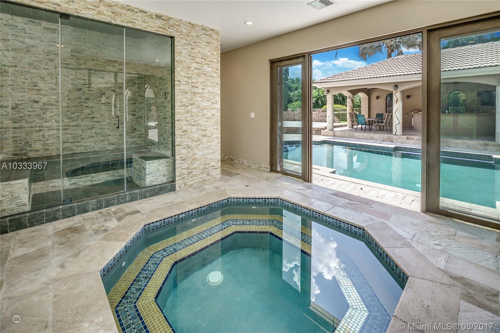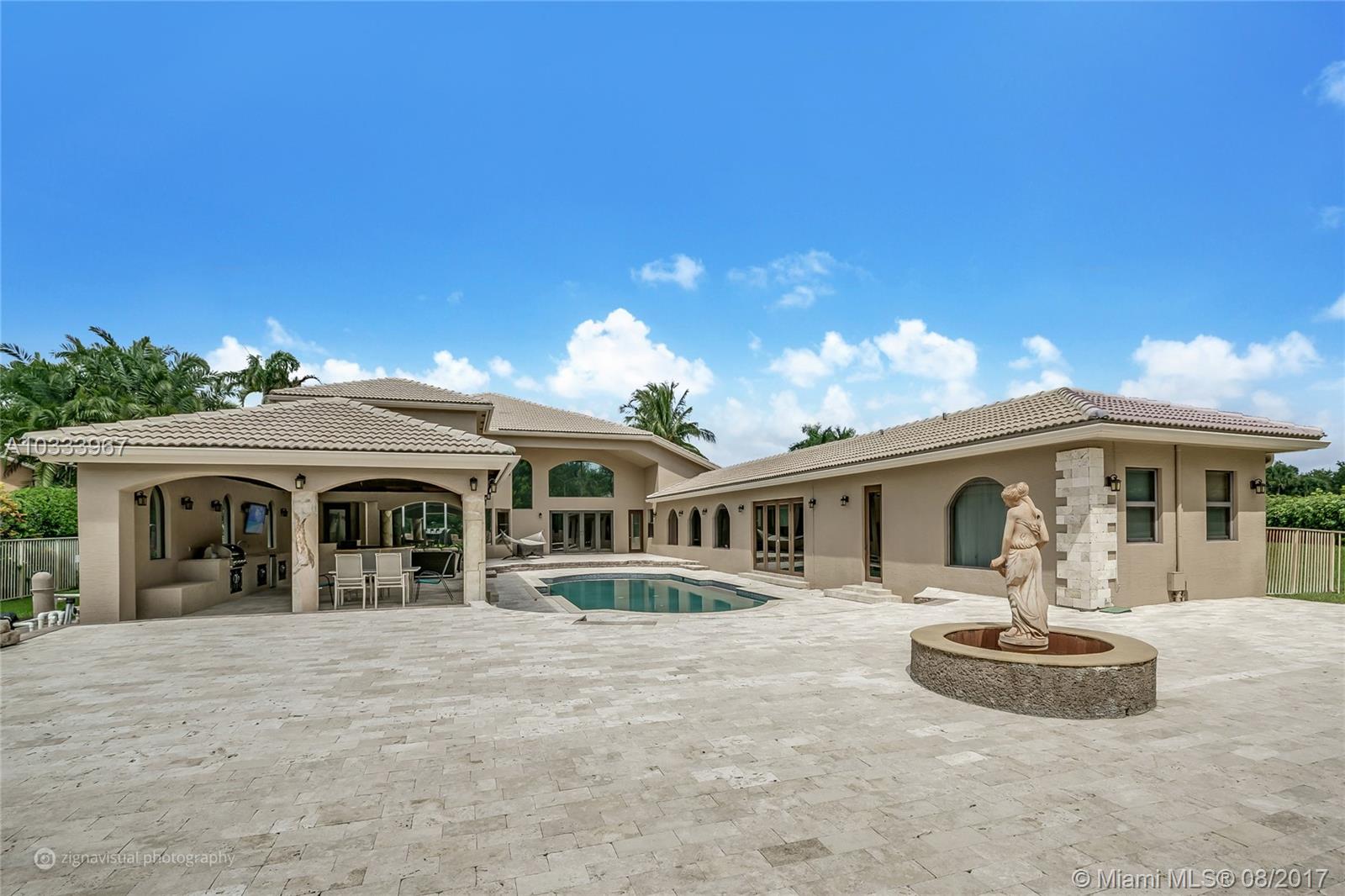 Exquisite Renoir model estate with 6 beds, 5.5 baths, office, formal dining room and loft. Largest model, plus has an entire wing added w/extra bedroom, gym, steam room, in-ground Jacuzzi, and covered outdoor summer kitchen. Features large pool surrounded by Italian Cypress trees. Enter interior to beautiful marble and Brazilian Cherry wood floors, kitchen granite counter tops, designer SS appliances. Huge loft perfect for a kids playroom, pool table. Roman tub in master bath. French doors all hurricane proof, plantation shutters, 20-foot vaulted ceilings, & 3-car garage. Long Lake Estate in A-rated school district, has playground, tennis/basketball courts, 24-hr guard gate & more. PRICED TO SELL!