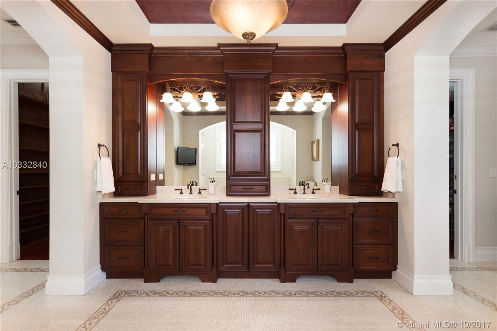 REDUCED AND PRICD TO SELL!! STUNNING ESTATE HOME IN EXCLUSIVE GATED COMMUNITY! Set on a corner lot in the exclusive and guard-gated community of Snapper Creek Lakes, this magazine-quality property boasts 6 bedrooms, each with en-suite baths, chef’s kitchen, a Ritz-Carlton inspired grand living area with over $1M of custom wood paneling, artist murals, wine cellar, bar, generator, elevator, library, study with one of 2 fireplaces, custom lighting, surround-sound audio, mosquito repellant misting system, mosaic-tiled pool, spa, summer kitchen…. and an oasis exterior designed for entertaining. This guard-gated community also offers a private marina & is surrounded by some of the top private & public schools in all of Miami.