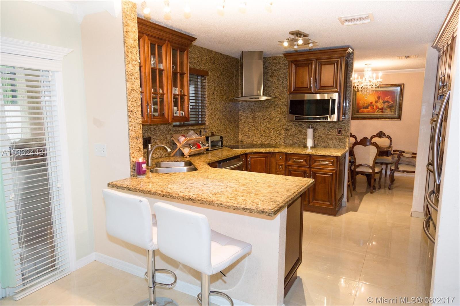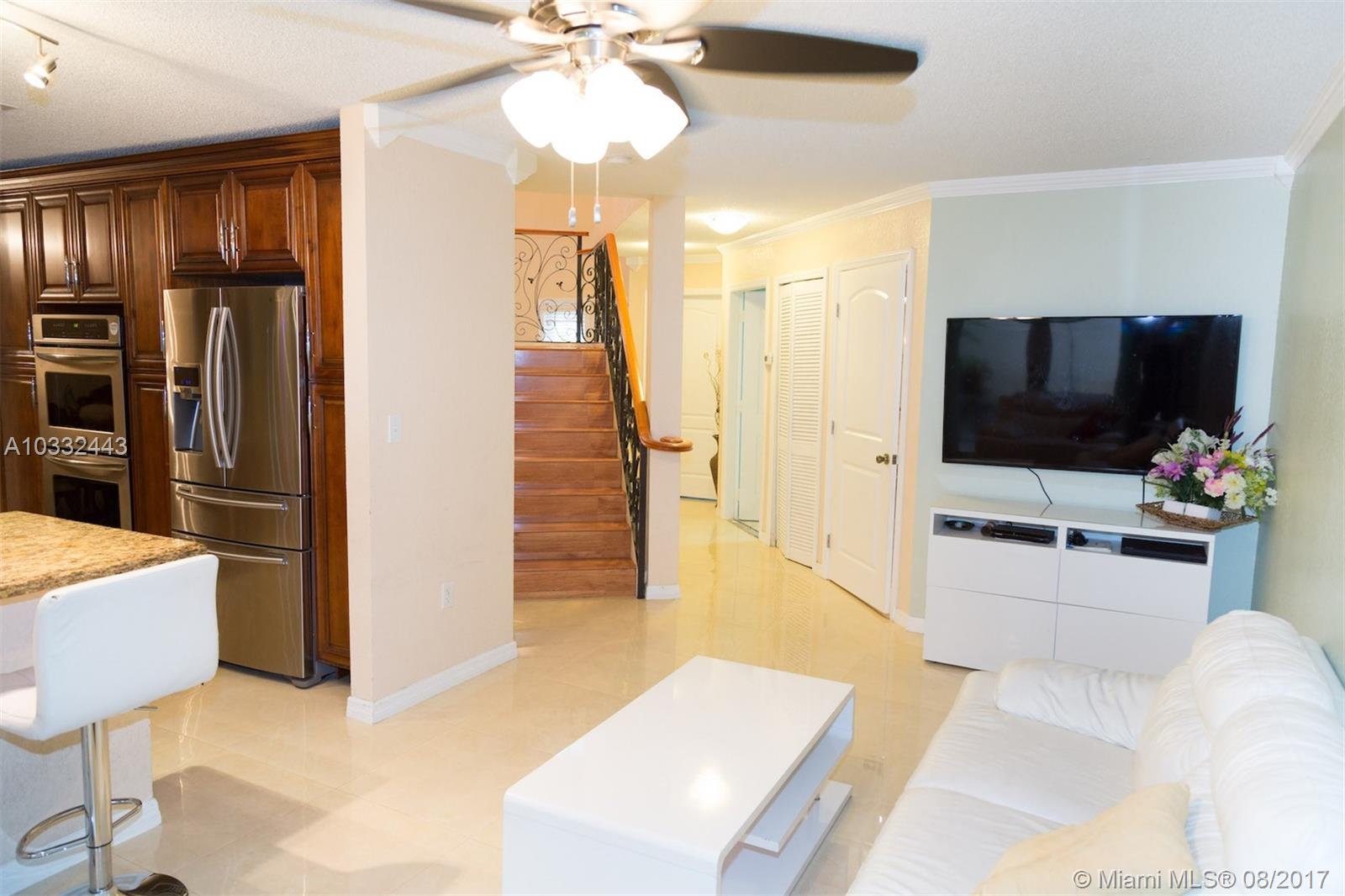 Desirable Cooper City corner town house, 3 bedrooms and 3.5 bathrooms plus downstairs bonus room, formal dining room and family room. Fabulous upgraded kitchen, with wood cabinets, granite counter tops, stainless steel appliances, double oven and range hood. Large modern ceramic tile downstairs and wood laminate floors on second floor and stairs. Custom iron staircase railing. All bathrooms are updated and have beautiful tile work, some featuring shower massage. Neutral colors throughout. Over 100+ in upgrades all tastefully done. Enclosed private patio with extended added roof. Roll out shutters. Great schools, close to stores, hospital and parks. MUST SEE $$$$100k+ in upgrades.