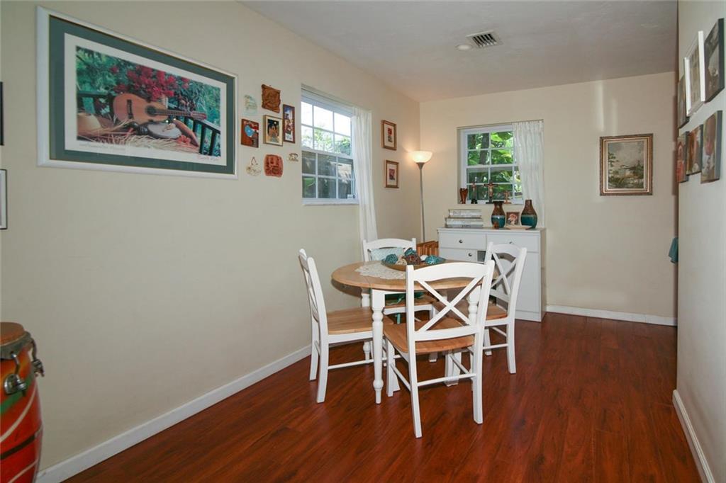 Charming 3 bedroom 1 bath home in the heart of Hollywood! Impeccably maintained. Beautiful kitchen with white cabinetry & stainless steel appliances. Updated bathroom. Home features laminate flooring. Indoor laundry room with newer washer/dryer. Roof 2012. A/C 2003. Square D Electrical Panel. Gas water heater & dryer. Panel shutters. Great curb appeal. Backyard is stunning with lush landscaping, mature Oak Trees & coal/wood BBQ grill.