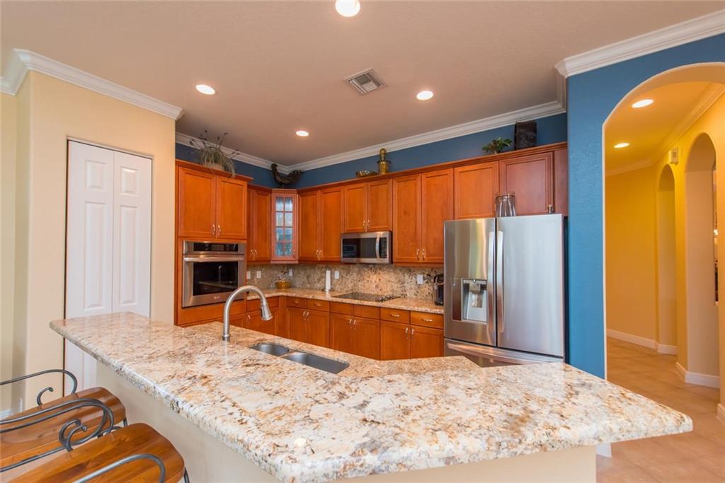 Offering the best opportunity in guard gated, desirable Parkland Isles, this impeccably maintained home is picture perfect!! Outstanding features incl: 16" stone-look tile, diagonally laid thru-out main living area; Brazilian cherry hardwood flrs in bedrms; three sets of French doors to patio; crown molding thru-out home; upgraded kitchen w/custom cabinets, stainless steel appliances & NEW, GORGEOUS, granite countertops & backsplash; coffered ceiling in spacious DR; & elegant master suite!! Fenced yard!