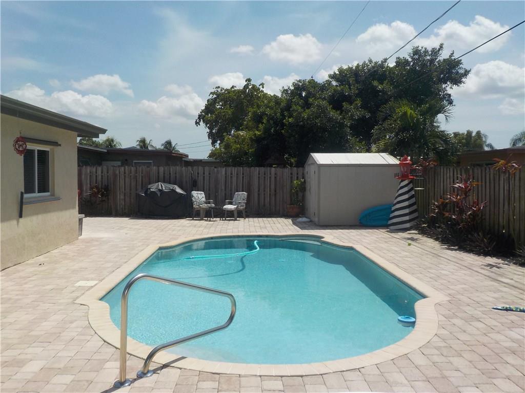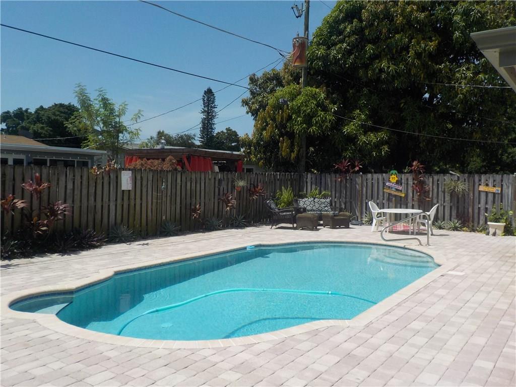 Beautiful 3 bedroom 2 bath home. Updated Kitchen features granite countertop, new cabinets and gas range. Bonus area off kitchen makes a great office or craft room. Nice screened patio leads to sparkling pool with zero mait. yard completely brick pavered. Great space for entertaining. Both bathrooms remodeled. Master bedroom has his and her closets with reclaimed wood doors leading towards a custom remodeled bathroom. Attention to detail and pride of ownership throughout this wonderful property.