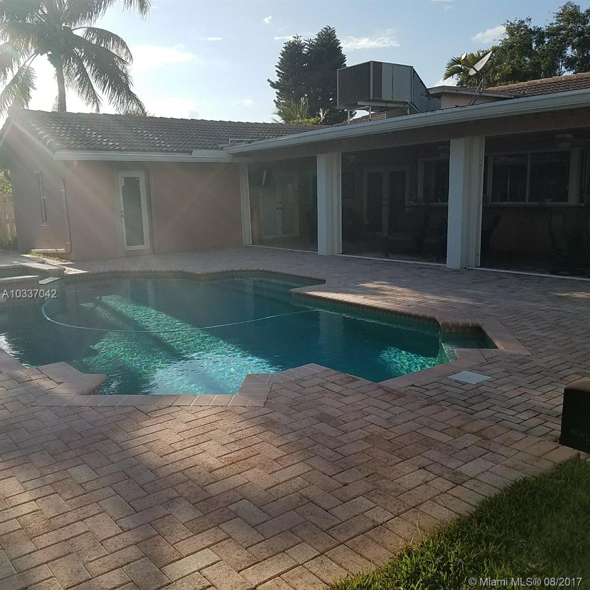 Beautiful 3 bedrooms, 2 bathrooms, re-designed Hollywood Hills Residence. Featuring hardwood floors throughout the house; remodeled kitchen with granite countertop, stainless steel appliances, pantry and a pass-thru windows. Formal living and Dinning room, Family room, Cabana bath, Foyer. French doors leading to 40' long covered sun-porch; 30 Ft. long pool with spa and paved deck; two car garage, barrel roof, circular paved driveway, in-house laundry room and so much more.