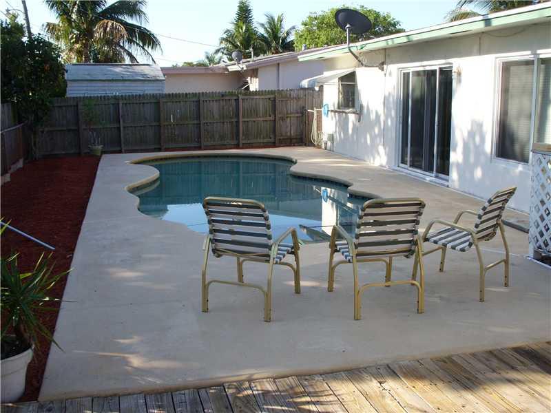 Spacious 3/2 with a 1 car garage, and a 1 car carport in Pompano Beach. Beautiful free form pool surrounded by a large patio. Good closet space. Corner lot.