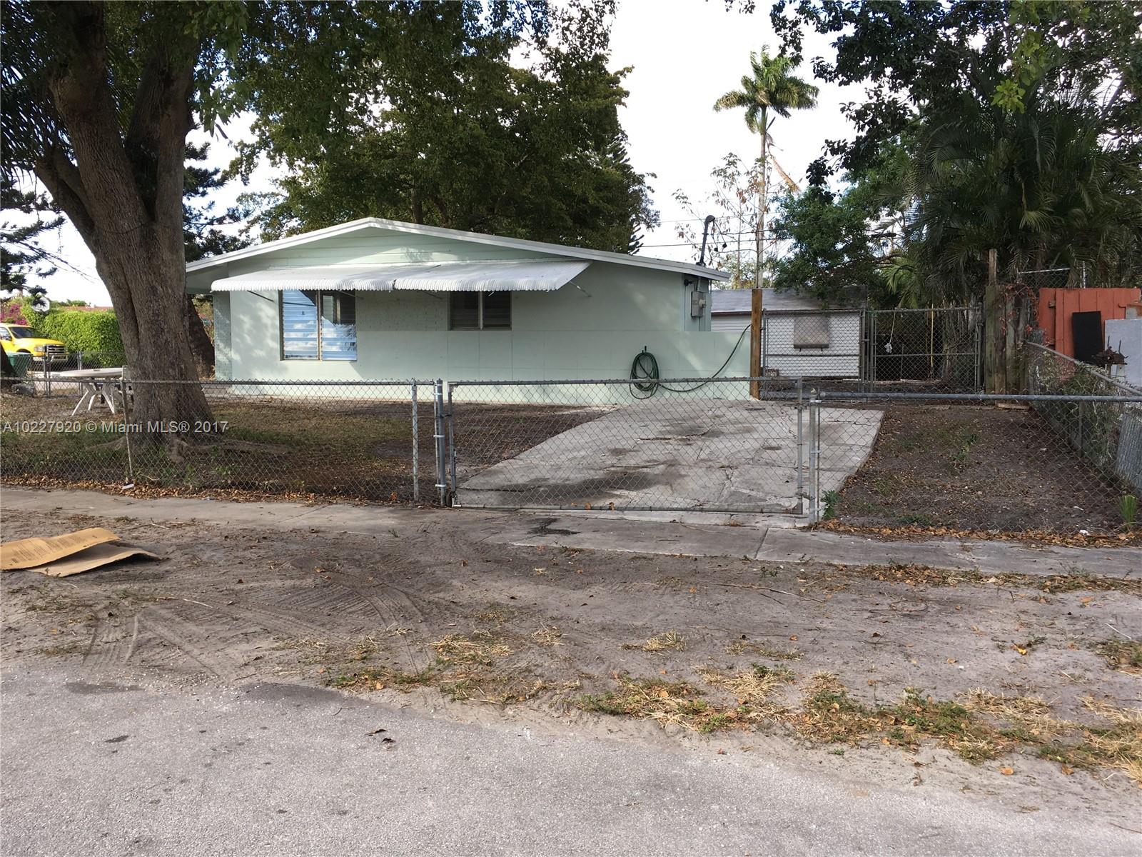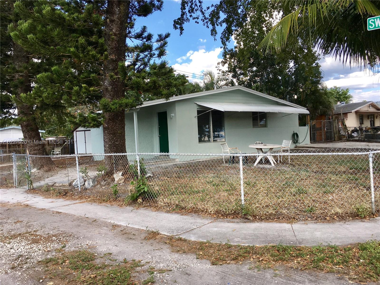 Clean 2 bed/1 bath, large corner lot. New kitchen and bathroom. Interior and exterior newly painted. Across the street from Davie Veterans Park. No central a/c.