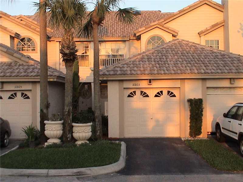 Great 2 BR, 2.5 bath Coral Springs Townhome. Spacious Unit, 1 Car Garage. Double master layout, walk-in closets. Kitchen opens to family room/dining rm, double sliding glass doors, covered, screened patio. Wood flooring first floor, carpet upstairs. Great quality, quiet neighborhood, guest parking, walk to community pool, newer associaton maintained roof, water, insur incl. Super location close to parkway for easy commute, walk to shopping, dining, "A" rated schools, Taravella HS right across street.