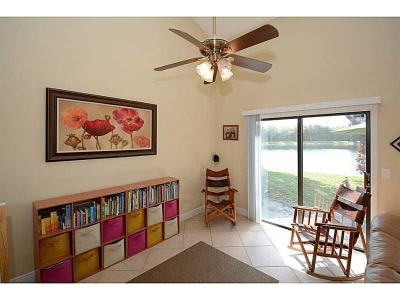 Picturesque 2/2 move-in-ready corner townhouse with expansive lake and spectacular sunset views. Home features volume ceilings in living room and den, spacious kitchen with a breakfast nook, updated bathroom with granite counter-tops, neutral ceramic til es throughout main living areas and loft style master suite upstairs. The community boasts a spacious pool and tennis courts. "A" Rated Schools.