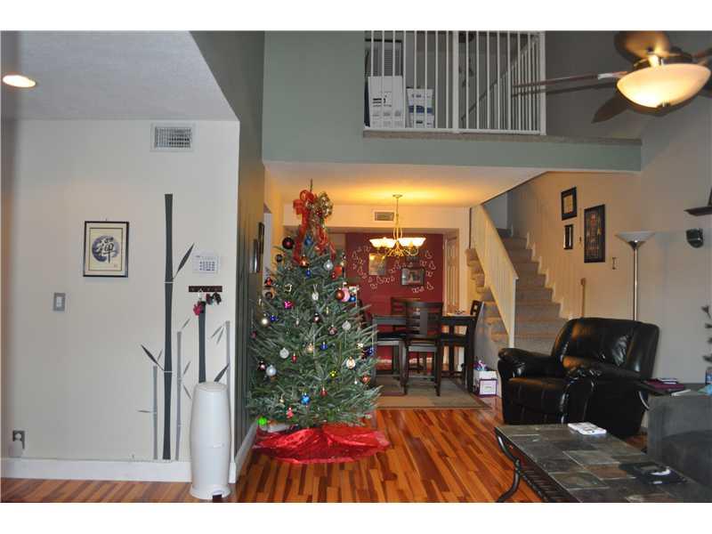 THIS 3 BED 2 BATH TOWNHOUSE IN A QUIET COMMUNITY FEATURES REAL WOOD FLOORS ON THE 1ST FLOOR. ENJOY THE CONVENIENCE OF THE MASTER BEDROOM ON THE 1ST FLOOR WITH SECONDARY BEDROOMS UPSTAIRS. BOTH OF THE BATHROOMS HAVE BEEN COMPLETELY REMODELED. THE QUAINT KITCHEN HAS SS APPLIANCES ALONG WITH A DOUBLE STACK WASHER/ DRYER. THERE IS ALSO REAR COVERED PATIO OVERLOOKING THE NICELY LANDSCAPED AND FENCED BACKYARD. THIS TOWNHOUSE IS ALSO EQUIPPED WITH ACCORDION SHUTTERS AND A NEW A/C INSTALLED IN 2010.