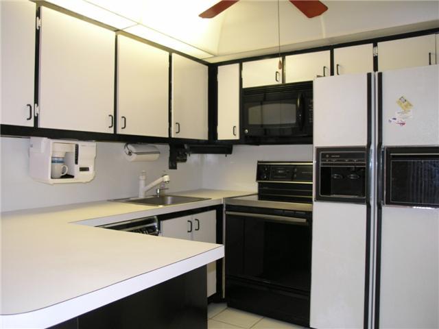 Spacious townhouse! Ceiling in kitchen area remodeled! Tile throughout living areas. Good-sized bedrooms. Screened-in patio front and back. Sliding doors lead to your own private courtyard. Front row parking. Conveniently located, close to main highways o f transit, shopping and dining! As-is, with right to inspect.
