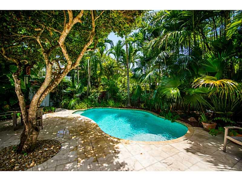 Lovely home on a quiet cul-de-sac in prestigious South Coconut Grove. Light filled living spaces with mid-century architectural details & exquisitely updated throughout. Custom kitchen opens to family room w/ walls of glass overlooking the lush tropical gardens that surround the pool & terrace. Steps from Merrie Christmas Park, a local landmark canopied by giant Banyan trees. Minutes from the Grove village center's galleries, boutiques & cafes and from Coral Gables shopping & restaurants.
