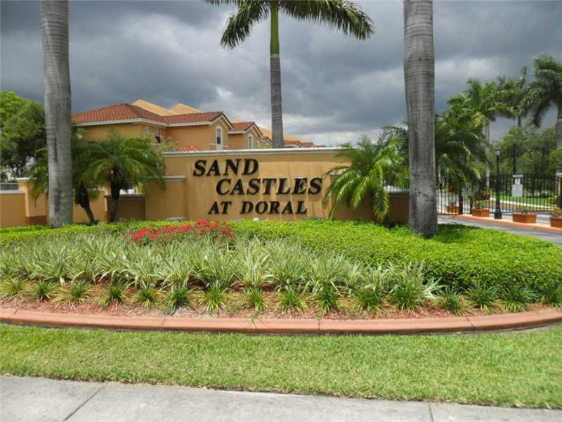 GREAT OPPORTUNITY, CHARMING & COZY TOWNHOME IN SANDCASTLES AT DORAL 3 BED, 2.5 BATH PLUS GARAGE CONVERTED INTO A DEN OR GAME ROOM. SOCIAL AREA, LAMINATED WOOD ON THE SECOND FLOOR, BRIGHT AND SUNNY OPEN FLOOR PLAN, CORNER UNIT. PROPERTY IN EXCELLENT CONDIT ION. PEACEFUL GATED COMMUNITY, PRIVATE PATIO, CLOSE TO SCHOOLS, SHOPPING CENTERS, AND HIGHWAYS. ***$3,000 SELLER CONTRIBUTION TO REPLACE KITCHEN APPLIANCES***