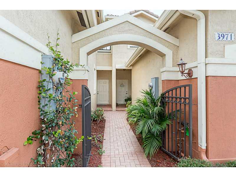 Unique townhouse located in exclusive gated community of Courtyard at the Grove in Weston. This is the only community walking distance to all three schools: elementary, middle, and high school. One of the newest townhouses community in Weston with a very unique courtyard style. 2 bedrooms upstairs with 2 full bathrooms and 1 half bath downstairs for your visit. Convenient yet private. Amenities include a community pool, playground, and beautiful landscaping. Security patrol 24 hours.