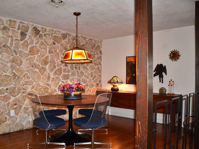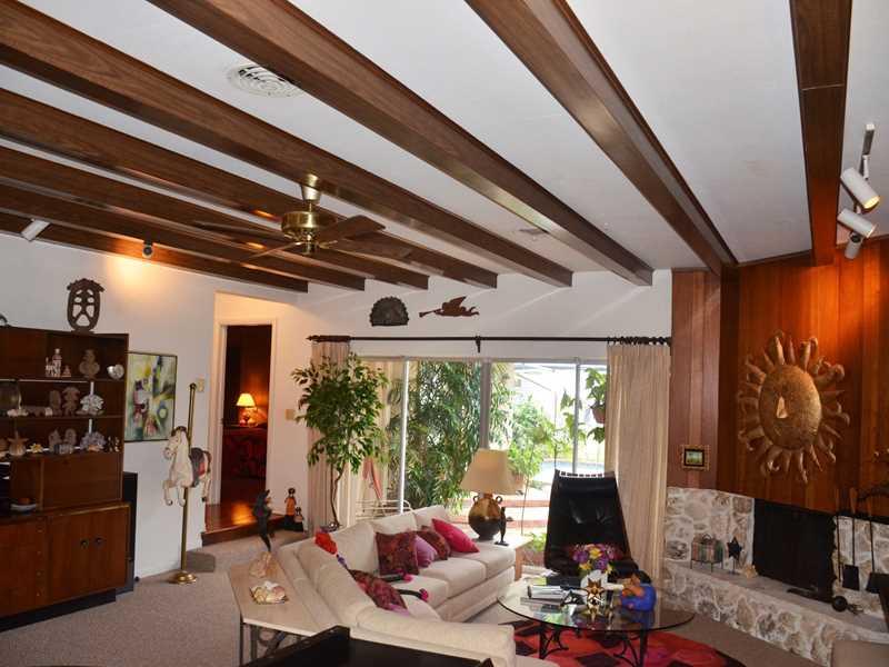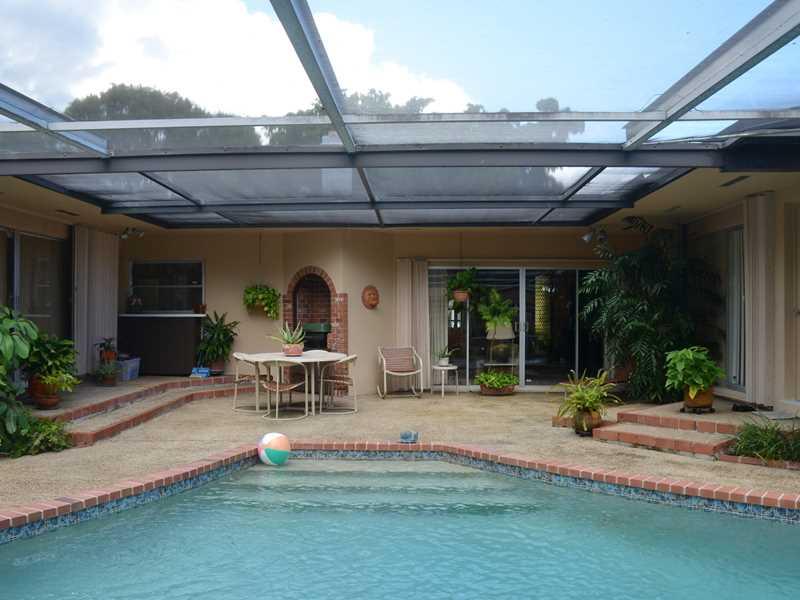 Mid-century modern custom split level home in pristine condition! Master Bedroom, Kitchen & Living Spaces overlook a free form pool in a screened in porch. Hard wood floors & carpet over terrazzo in living room. Over sized living area has beamed ceilings. Florida marble fireplace & dining room wall. Eat in kitchen w/ breakfast bar. Split bedroom floor plan w/ a spacious master has a walk in closet. Carport w/ enclosed garage to accommodate a workshop. New (Trane) A/C, 7 yr roof & updated electric.