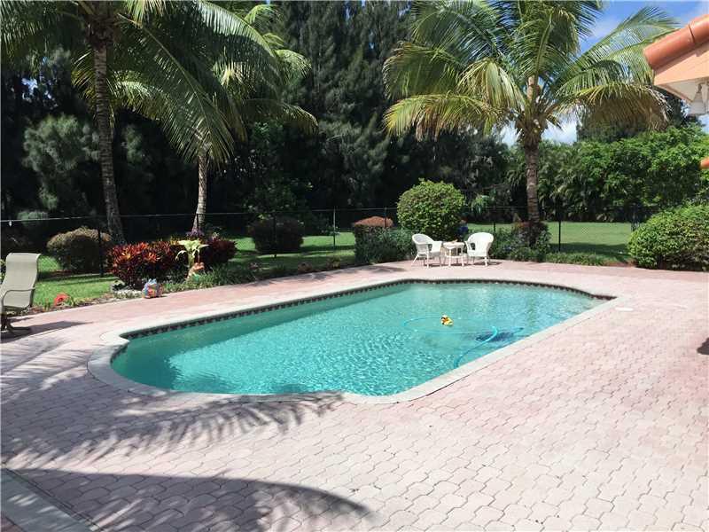 Spectacular Lot Over 1+ Acre Pool Home with Oversized pie-lot, fenced yard, covered patio.3car garage with remodeled gourmet kitchen. NEW ROOF 2015.New sprinkler system 2015.Exterior painted 2015. New A/Handler 2015.Split bedrooms with oversized family ro om for entertaining. Cul-d-sac location. Ideally situated midpoint Miami-Ft. Lauderdale. A+Schools. Serene ambiance in prestigious gated community.