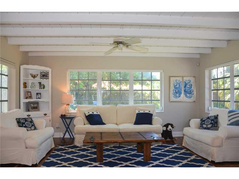 Spacious 2 bedroom, 2 bath, 1 car garage,1834 sq.ft on a 1 1/2 corner lot of over 10,000 sq.ft. New beautiful Acacia wood floors & crown molding throughout, wood burning fireplace, new light fixtures & blinds, freshly painted, open kitchen into formal din ing room. Gas stove, dryer & new water heater. Family room w/exposed wood beams, laundry room, covered patio, new fence in back yard, termite warranty, room for a pool or addition. Conveniently located, minutes from the beach and downtown Hollywood.