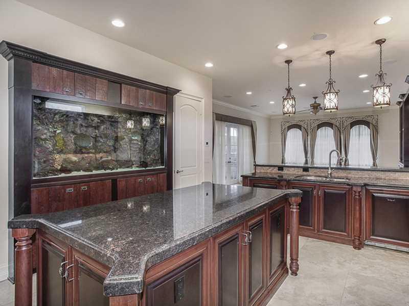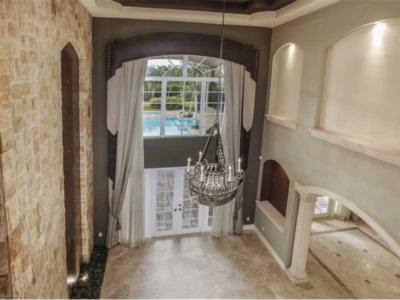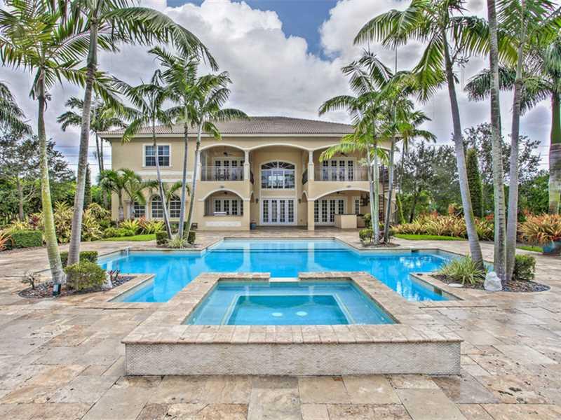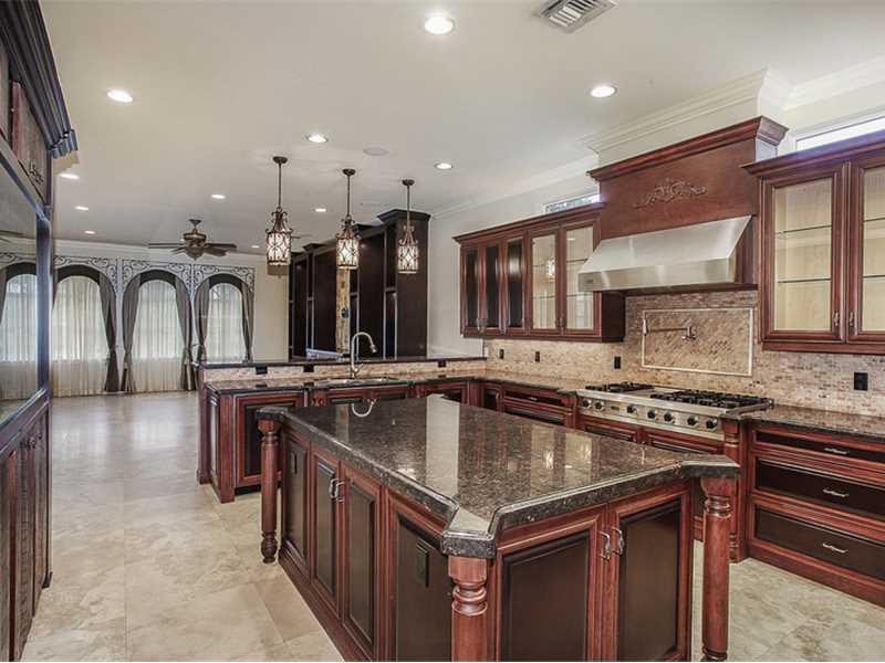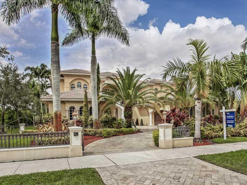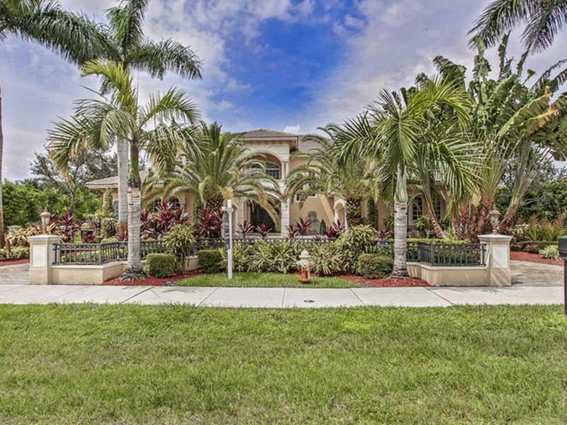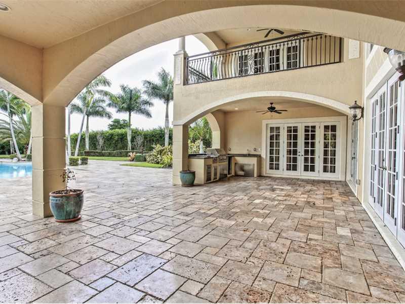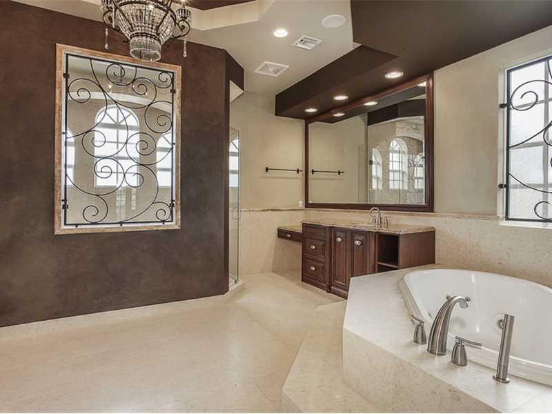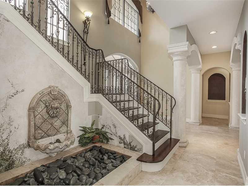 Custom Mediterranean estate perfect for entertaining! Boasting 6 bedrooms, entertainment room, hidden media room, 2 covered balconies & much more - this home has it all! 3 bedrooms downstairs & 3 upstairs including the master suite - each bedroom has an e n suite bathroom. Enormous covered patio w/ summer kitchen & separate bar leads you to the beautiful marble pool deck & resort-style pool & spa. The huge, lushly landscaped yard provides plenty of privacy. Gated, circular driveway w/ two 2 car garages.